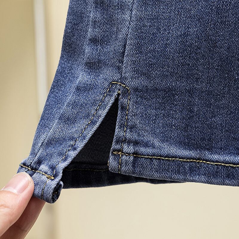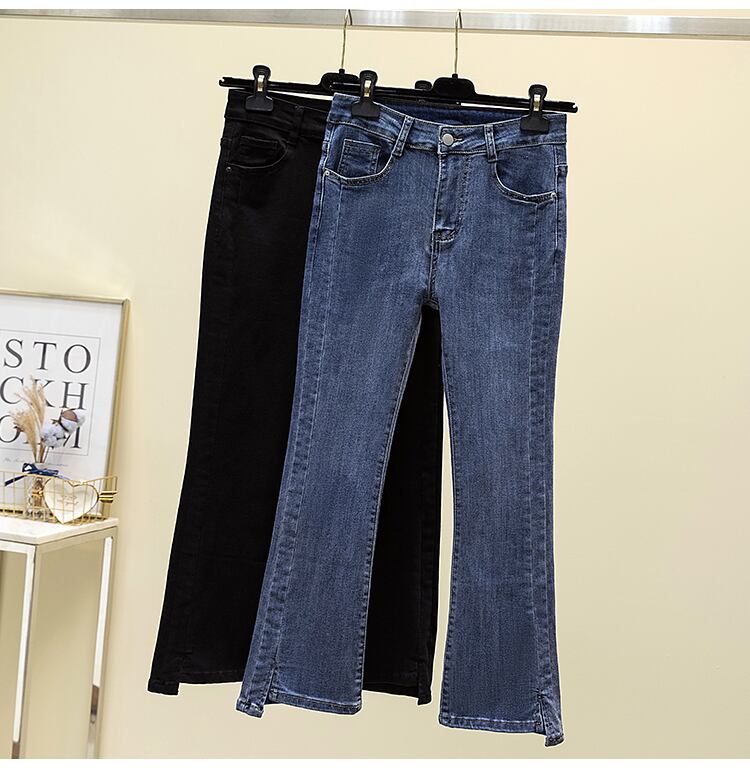 大きいサイズの婦人服2023年春新作ハイウエスト痩身スリットマイクロフレアオールマッチおしゃれな洋風デニムパンツ レッド 大きめサイズ スプリング 春物 888411902383726