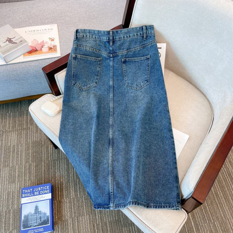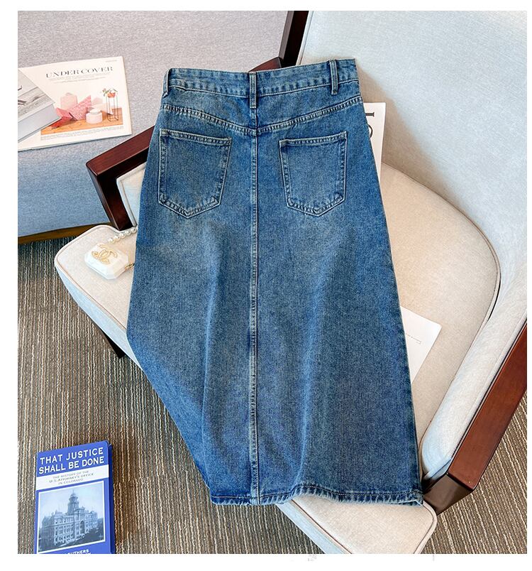 プラスサイズの婦人服 2023 ファットシスター夏新ミッドレングスポケットスリットデニムスカートバッグヒップスカート 大きめサイズ サマー 夏物 8884162052372737