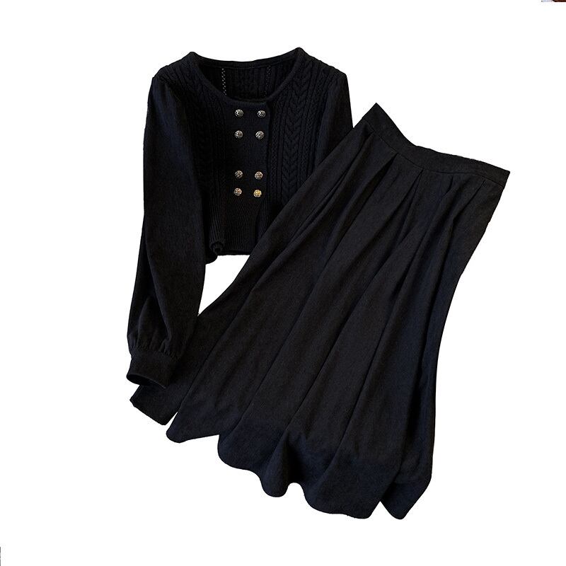 色:コーヒーカラーツーピーススーツ,黒のツーピース