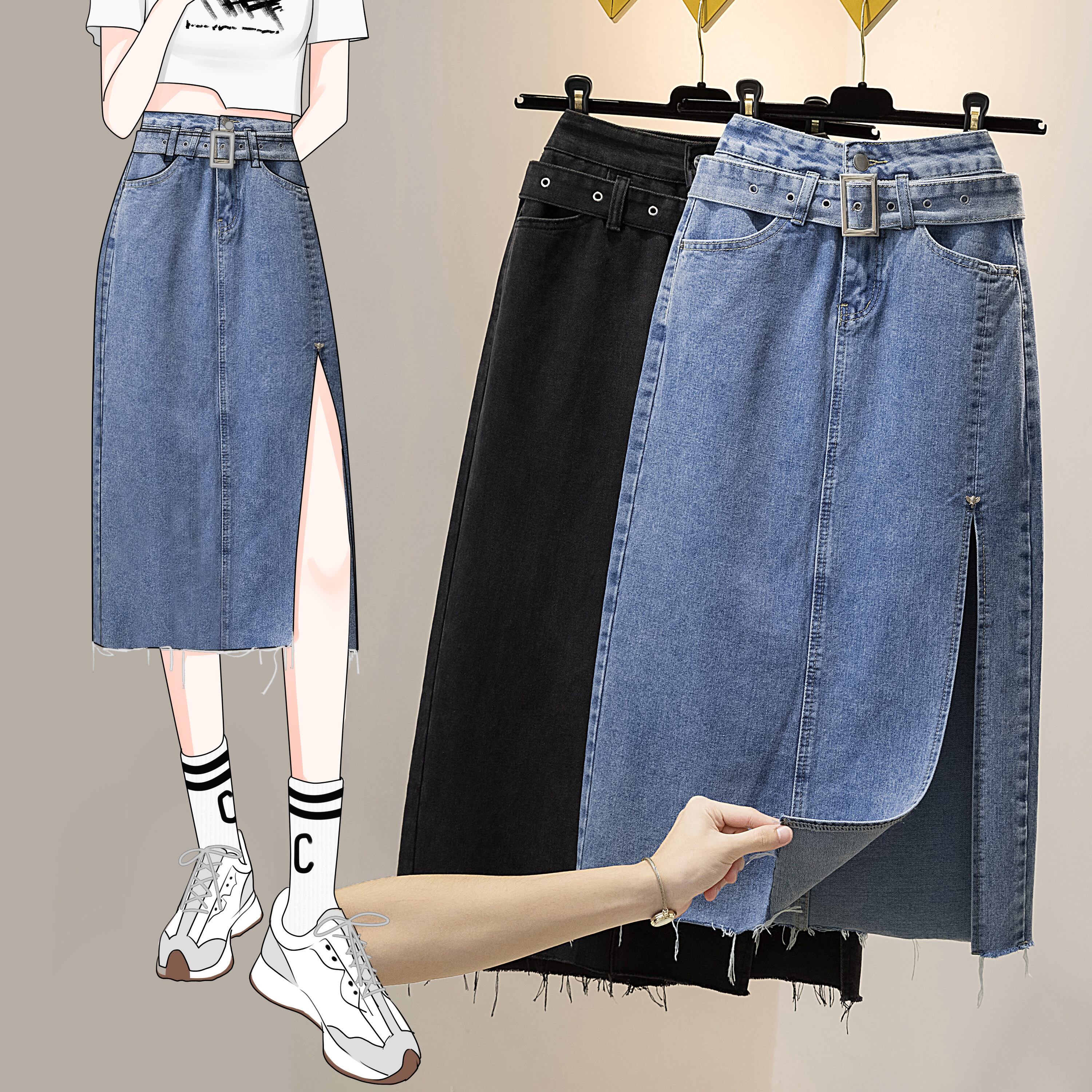 プラスサイズの婦人服2023ファットシスター春の新バージョンハイウエストスリムデニムスカートファッションオールマッチロングスカート ハイウェスト 大きめサイズ スプリング 春物 8884141837726624