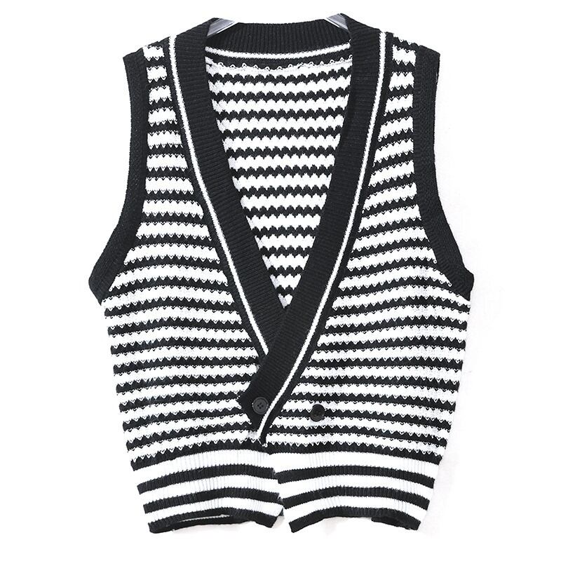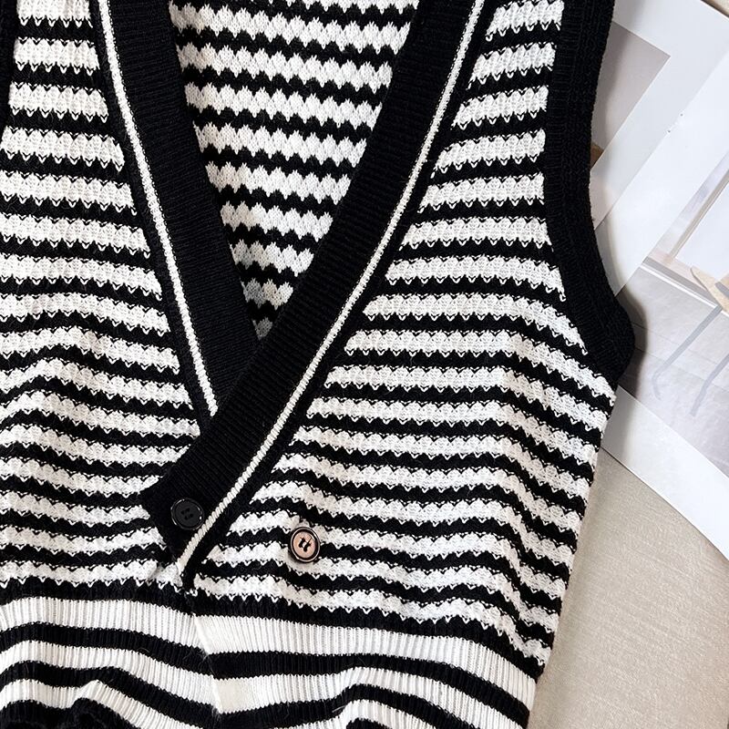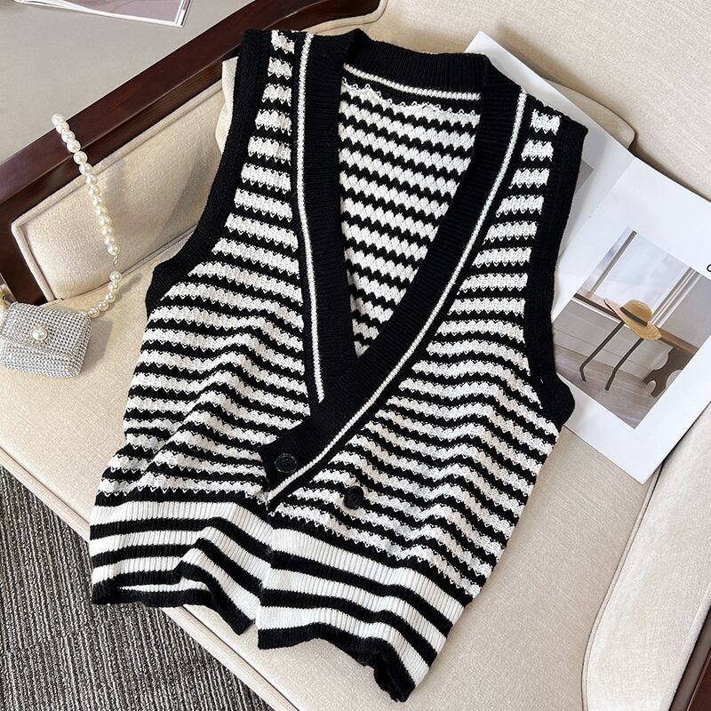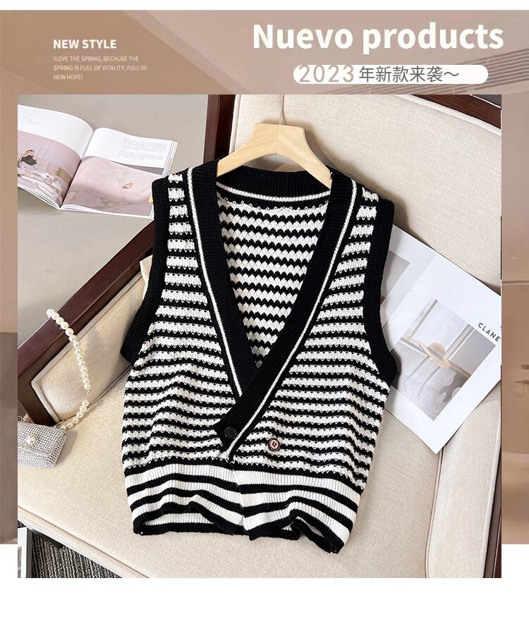 大きいサイズの婦人服 2023 春の新しいスタイルの太った姉妹のデザインは、より薄く見え、年齢を減らします。オールマッチのニットストライプのベスト 大きめサイズ スプリング 春物 8884182996976175