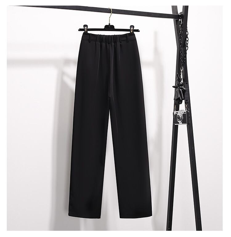 大きいサイズの婦人服 2023 春服の新しい太った姉妹のファッションハイウエストルーズな年齢を減らす無地オールマッチストレートレッグパンツの女性 ハイウェスト 大きめサイズ スプリング 春物 ソリッドカラー 8884199176201157