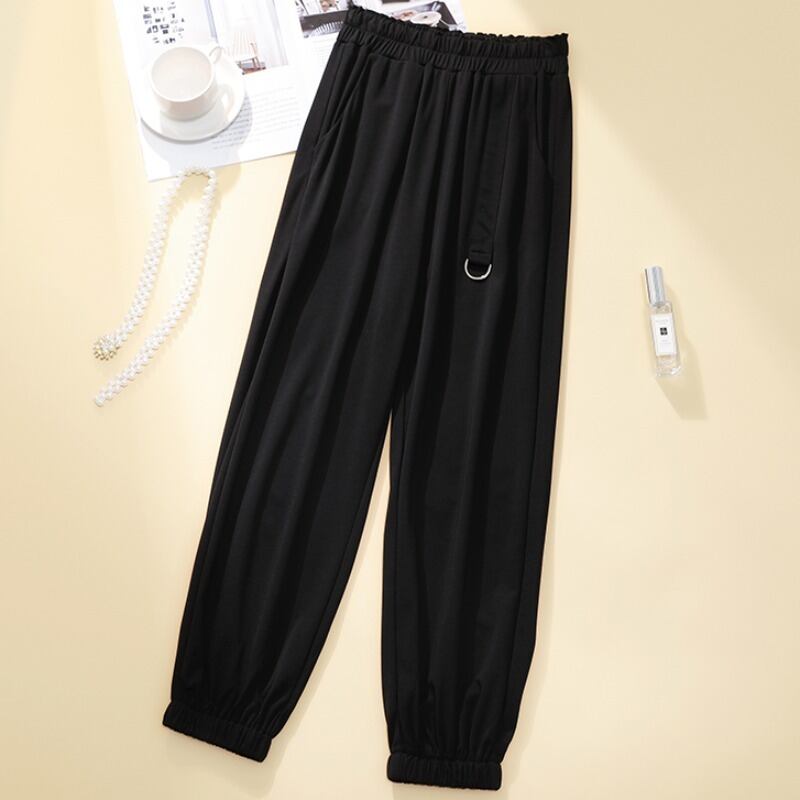プラスサイズの婦人服 2023 夏の新しいファットシスターカジュアルバージョン弾性ハイウエストオールマッチ無地ハーレムパンツ女性 ハイウェスト エラスティック 伸縮 大きめサイズ サマー 夏物 ソリッドカラー 888418625422412