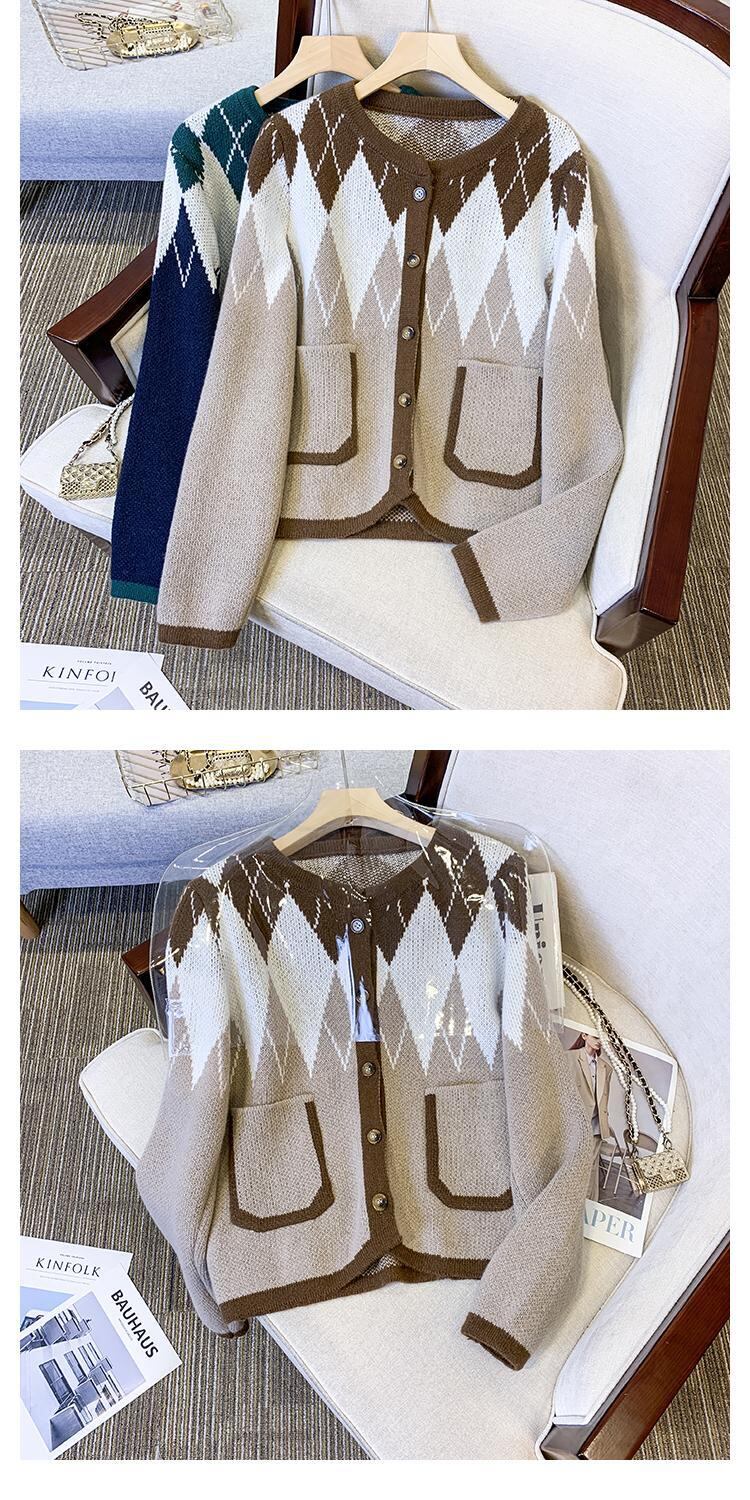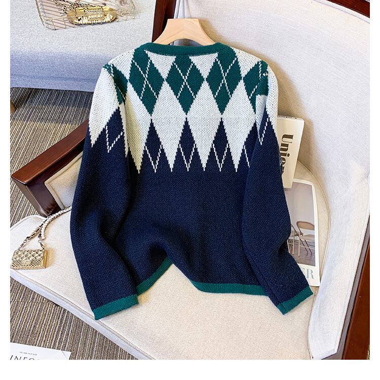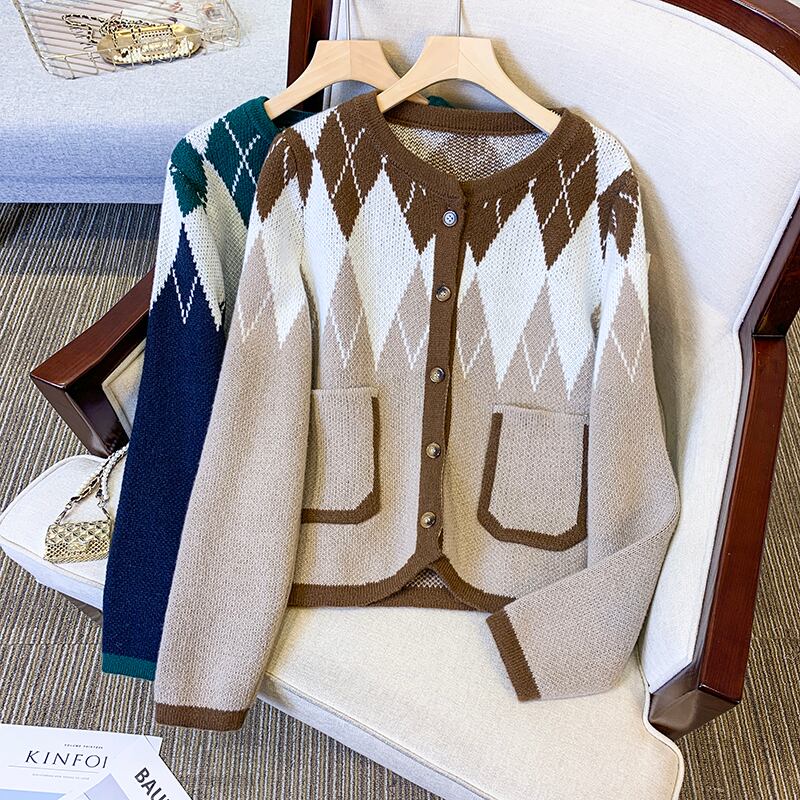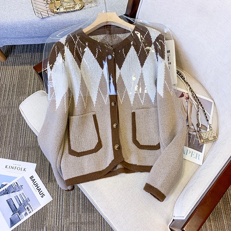 プラスサイズの婦人服 2023 太った姉妹春の新しいレトロな痩身と年齢を減らすダイヤモンド形のセーター カーディガン ジャケット 大きめサイズ スプリング 春物 8884126823625343