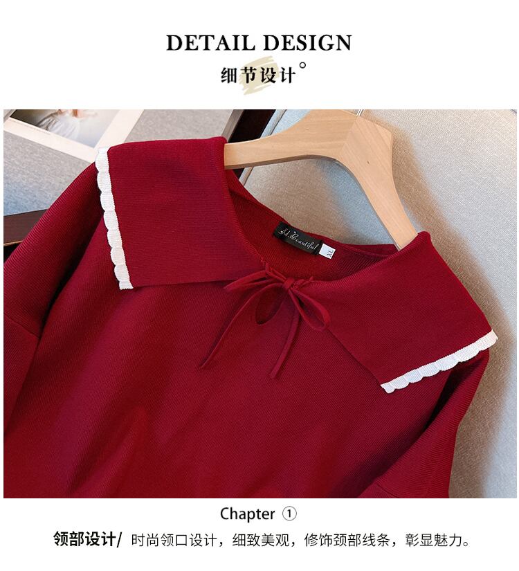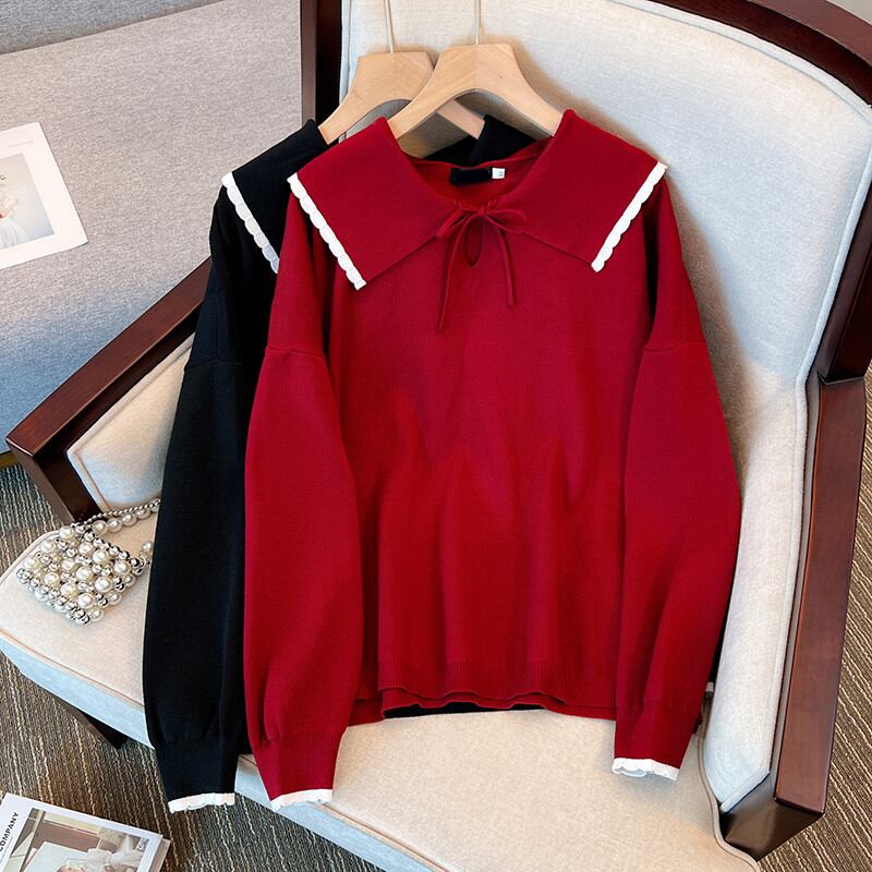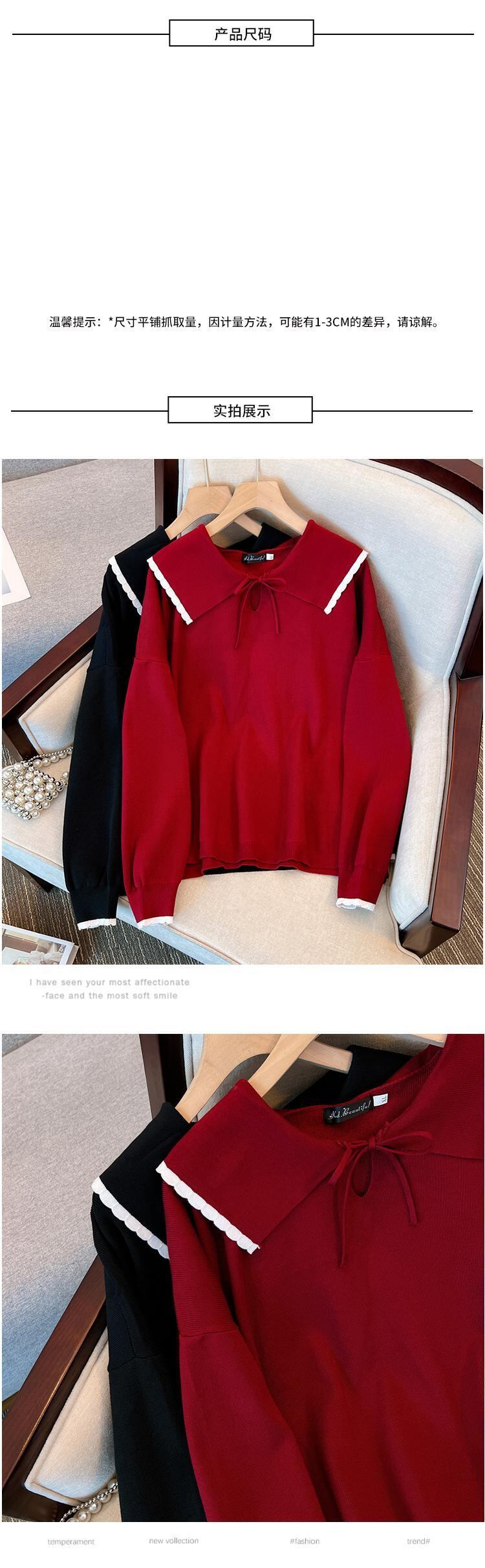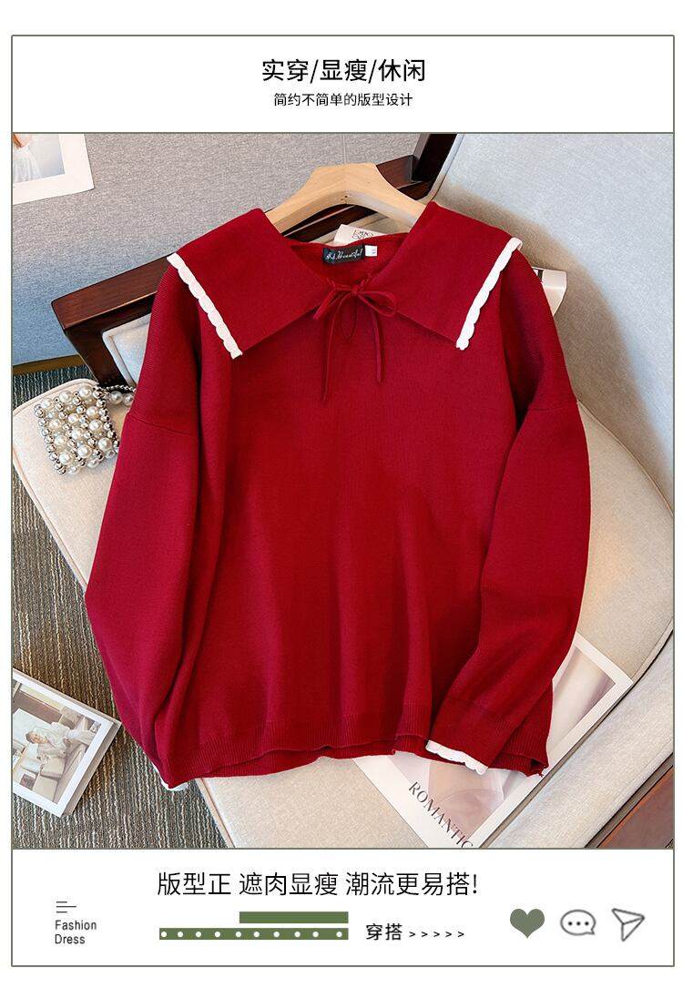 プラスサイズの婦人服 2023 ファットシスター春の新しい eign スタイルネイビーカラー長袖トップゆったりと薄いセーターの女性 ロング 大きめサイズ スプリング 春物 8884110028886218