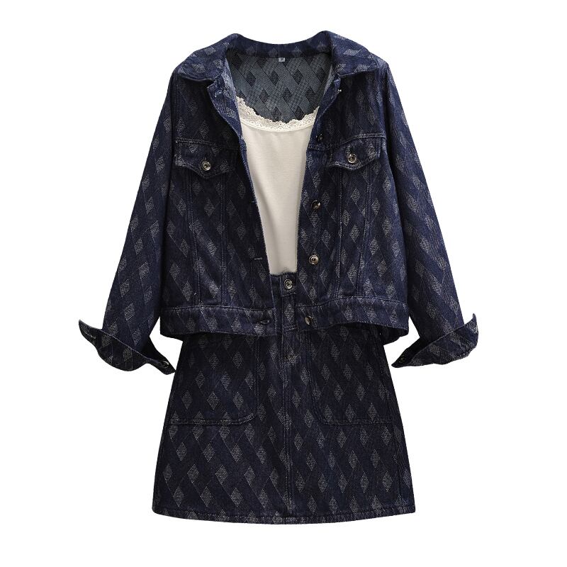 大きいサイズの婦人服 2023 春服ファットシスターズ新しいファッションレトロな薄いデニムジャケットスカート 2 点セット 大きめサイズ スプリング 春物 8884152531855836