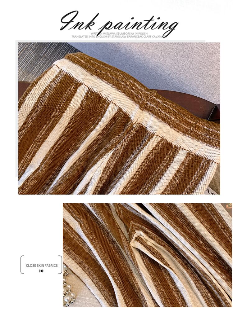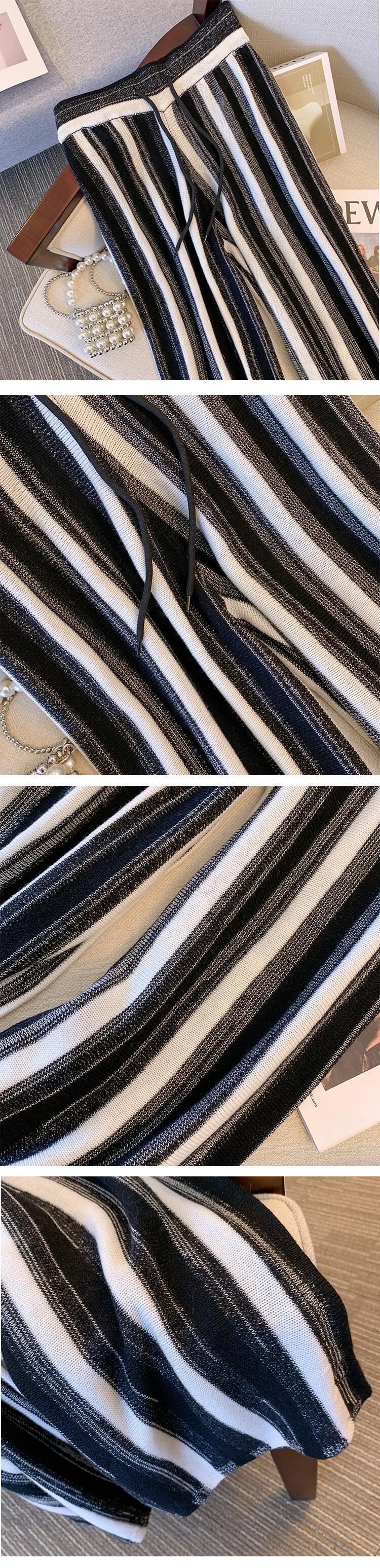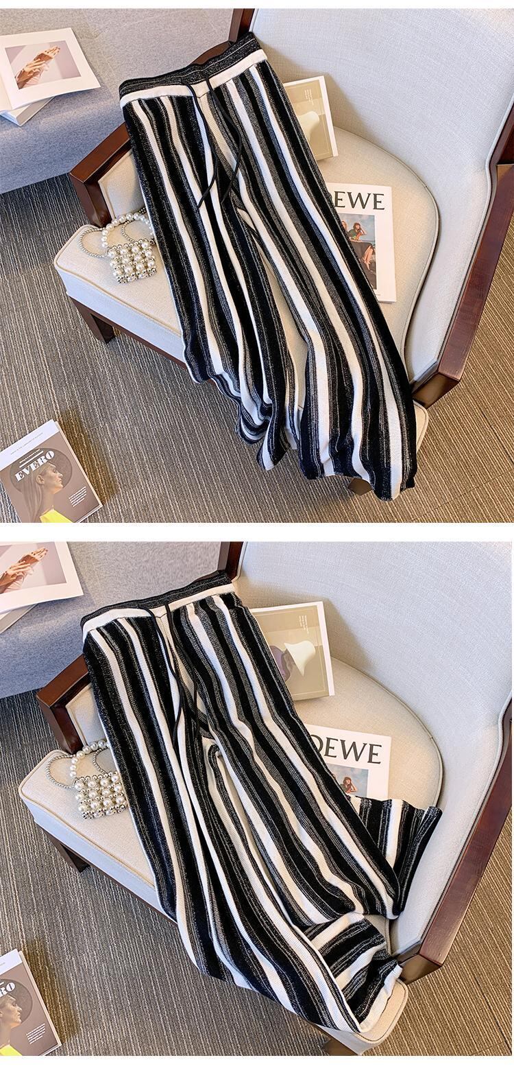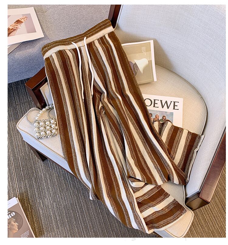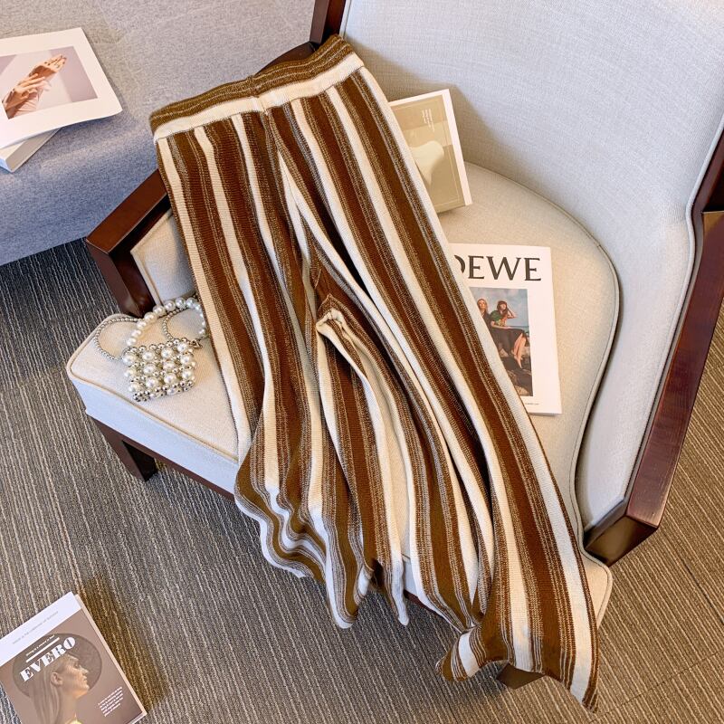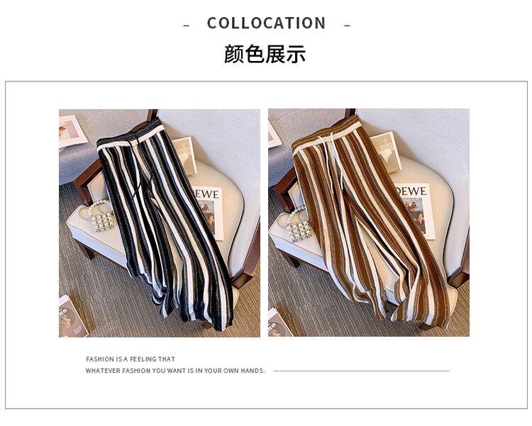 大きいサイズの婦人服 2023 太った姉妹の冬服の新しい縦ストライプ ニット ワイド パンツ スリム カジュアル ストレート ズボン 大きめサイズ ウィンター 冬物 8884162345843611