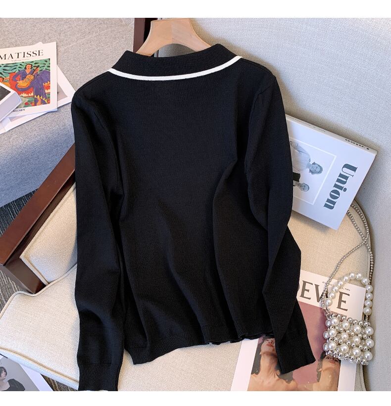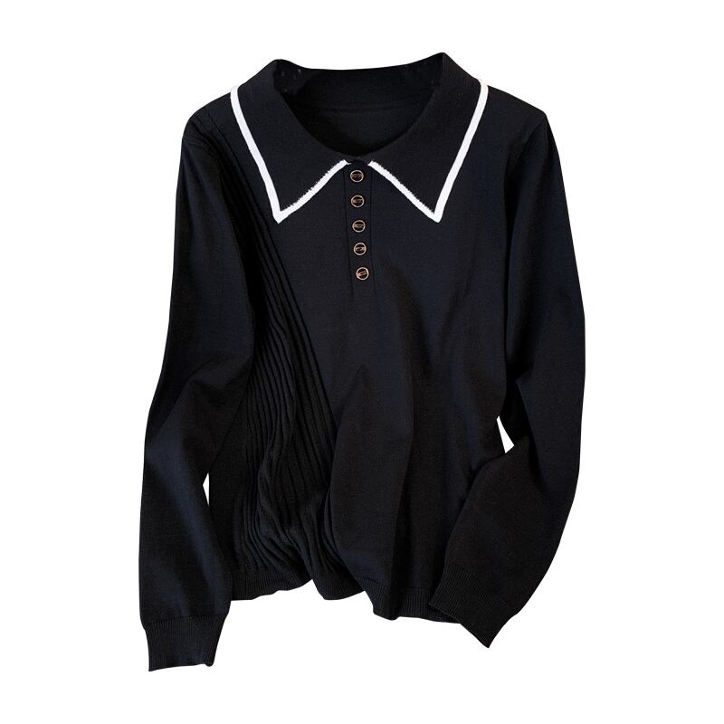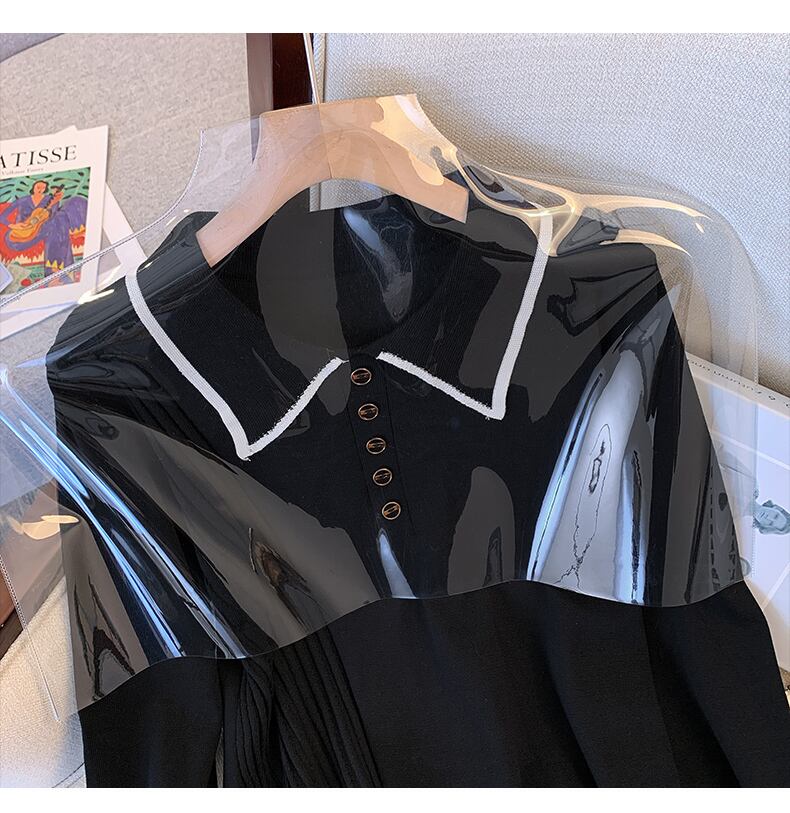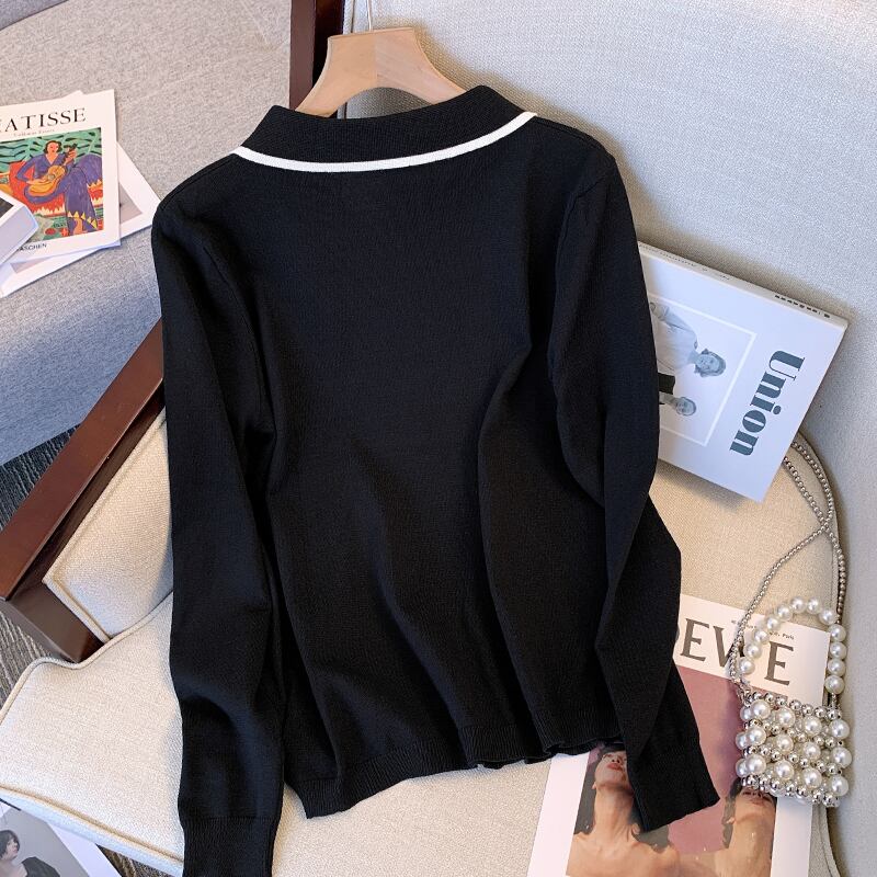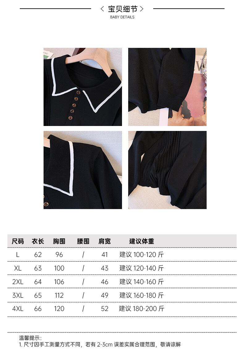 プラスサイズの婦人服 2023 春の新スタイル脂肪姉妹に見える薄いポロ襟緩い気質トップファッションニット女性 大きめサイズ スプリング 春物 888414473837851