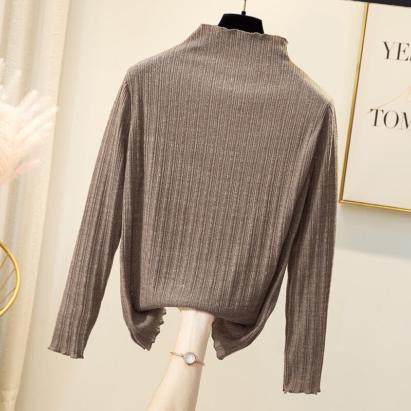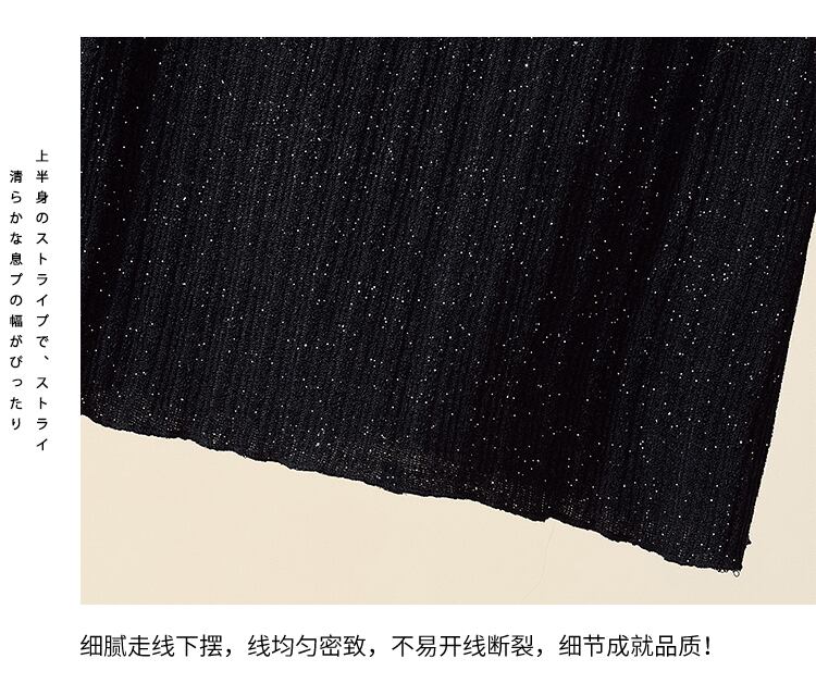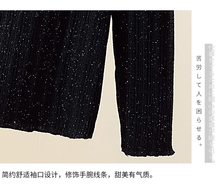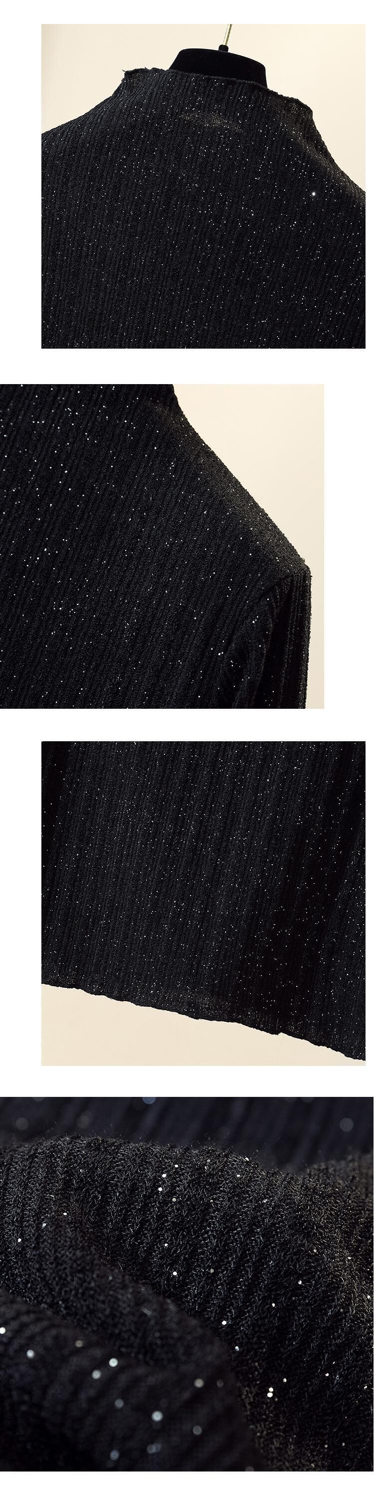 プラスサイズの婦人服 2023 トレンディな女性の春の新しいファットシスターハーフハイカラーニットルーズスリム長袖スパンコールボトムシャツ ロング 大きめサイズ スプリング 春物 8884187287341151