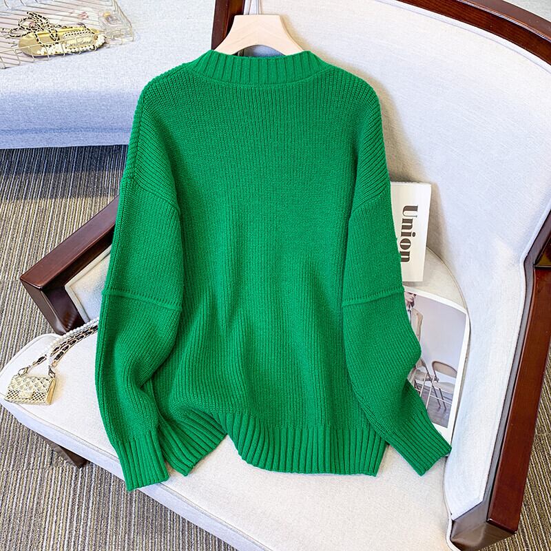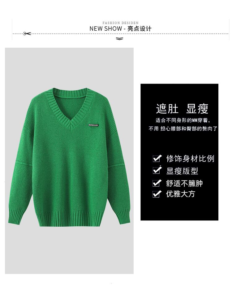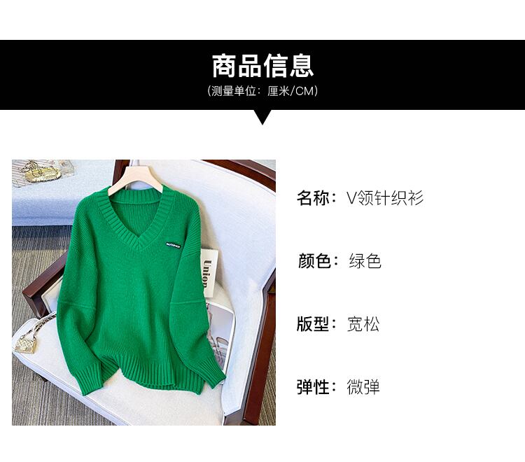 大きいサイズの婦人服 2023 春服ファット シスターズ新しいセーター V ネック ラベル レター ウエスタン スタイル怠惰な風のセーター 大きめサイズ スプリング 春物 Vネック 8884179365651773