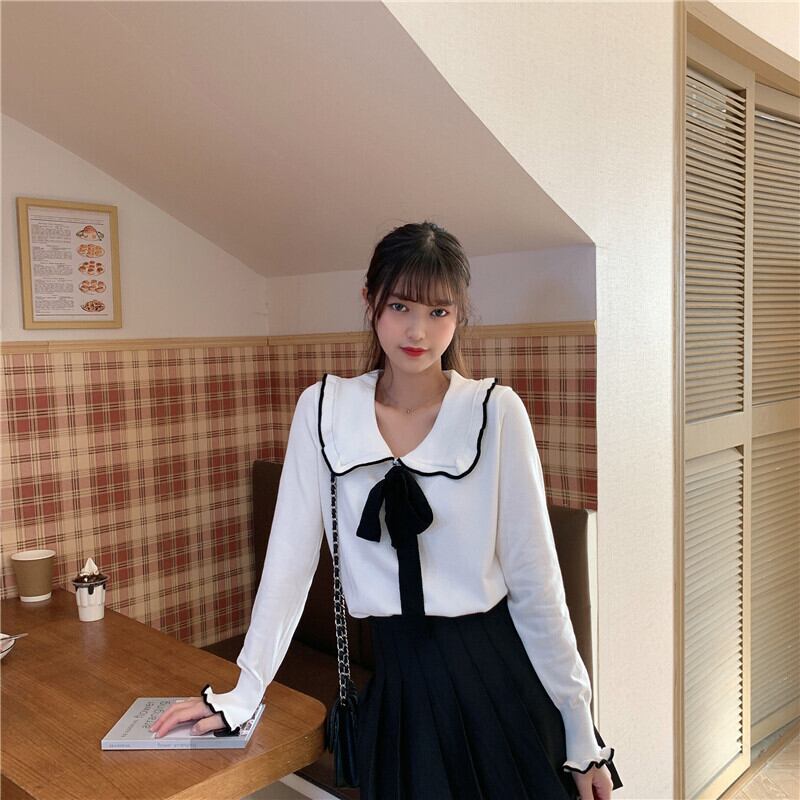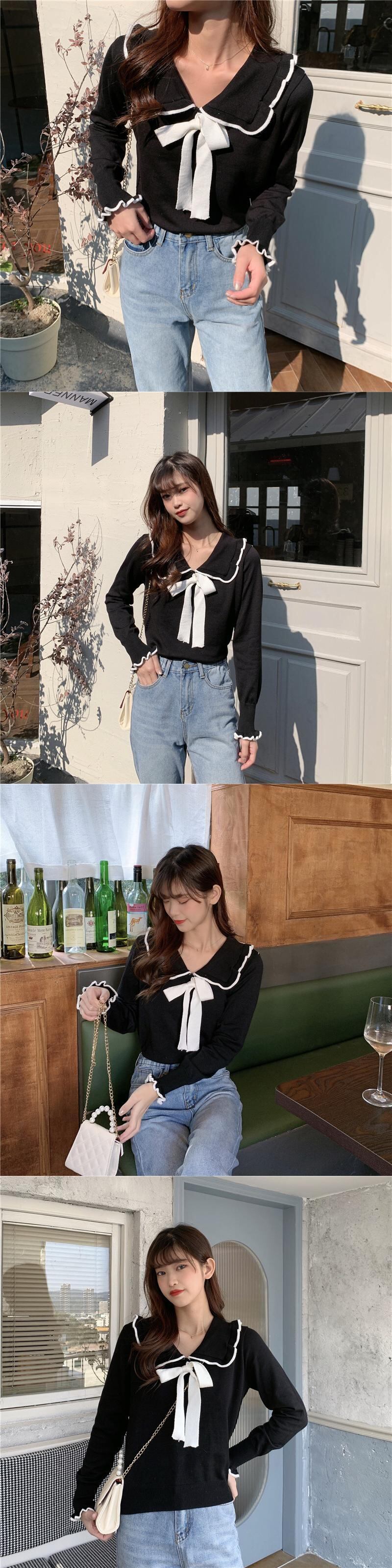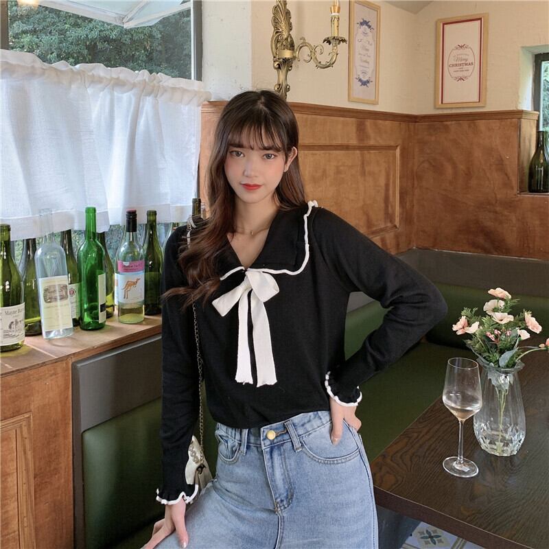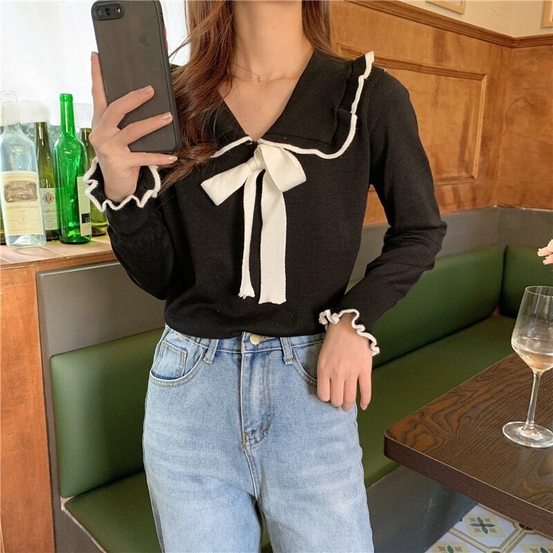 プラスサイズの婦人服 2023 トレンディな女性の春の新しい脂肪姉妹ファッショナブルな人形の襟ちょうニットセーター長袖のセーターの女性 ロング リボン 大きめサイズ スプリング 春物 8884130534299268