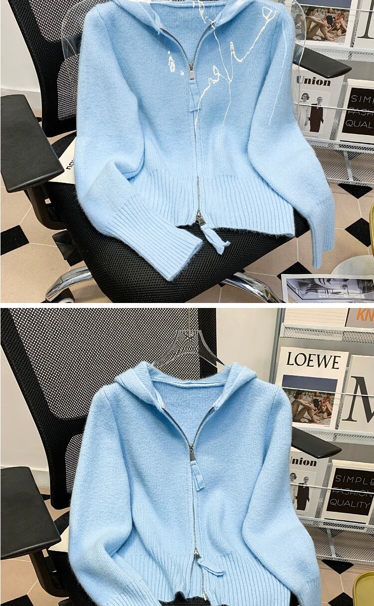 プラスサイズの婦人服2023ファットシスター春の新しいフード付きデザインは薄くてニッチな巾着ニットカーディガンジャケットに見えます 大きめサイズ スプリング 春物 8884169769729886