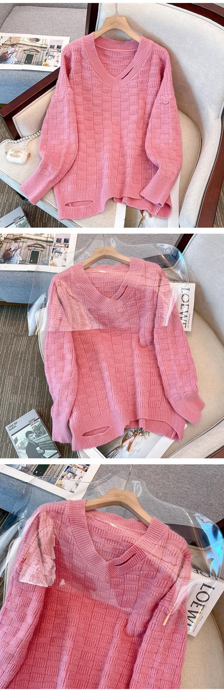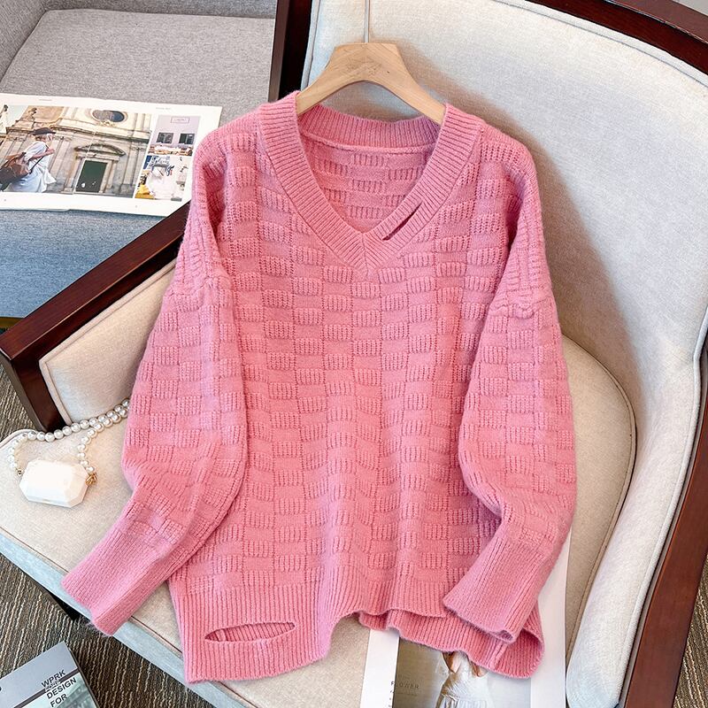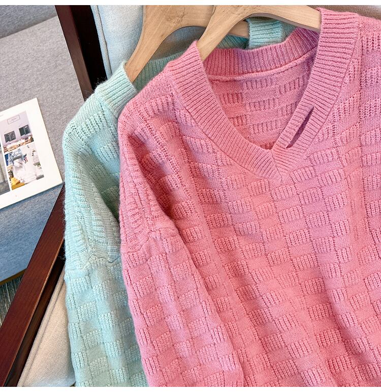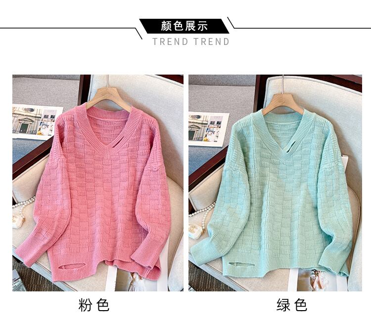 プラスサイズの婦人服 2023 ファットシスター春の新作ニットウェア年齢減少キャンディーカラールーズカジュアル V ネックセーター 大きめサイズ スプリング 春物 Vネック 8884199620950019