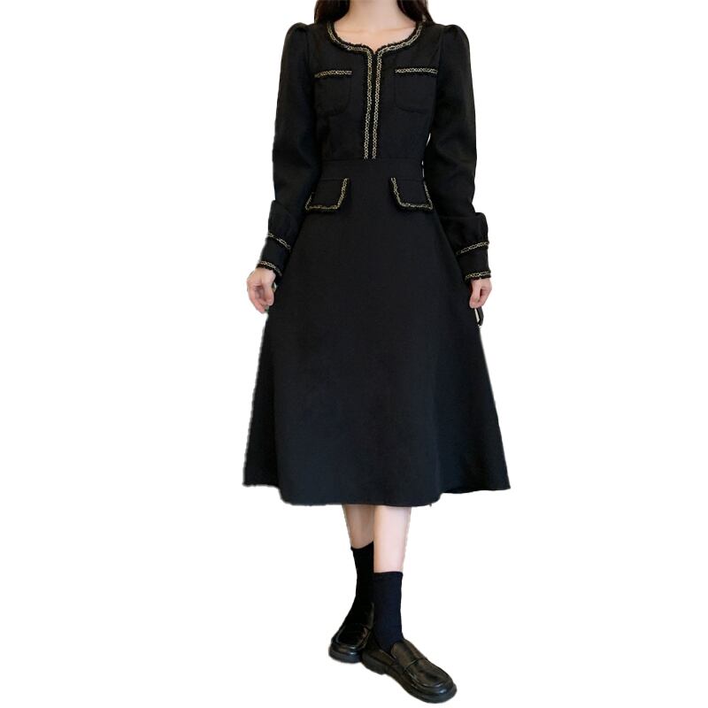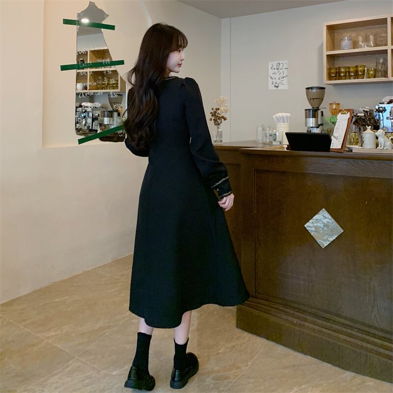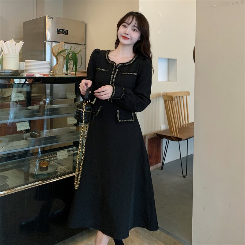 プラスサイズの婦人服 2023 脂肪姉妹春の新しいスクエアカラーフランスのレトロなヘップバーンスリムロングドレスの女性 大きめサイズ スプリング 春物 スクウェア 888413245451377