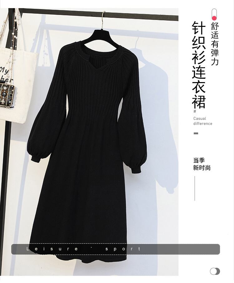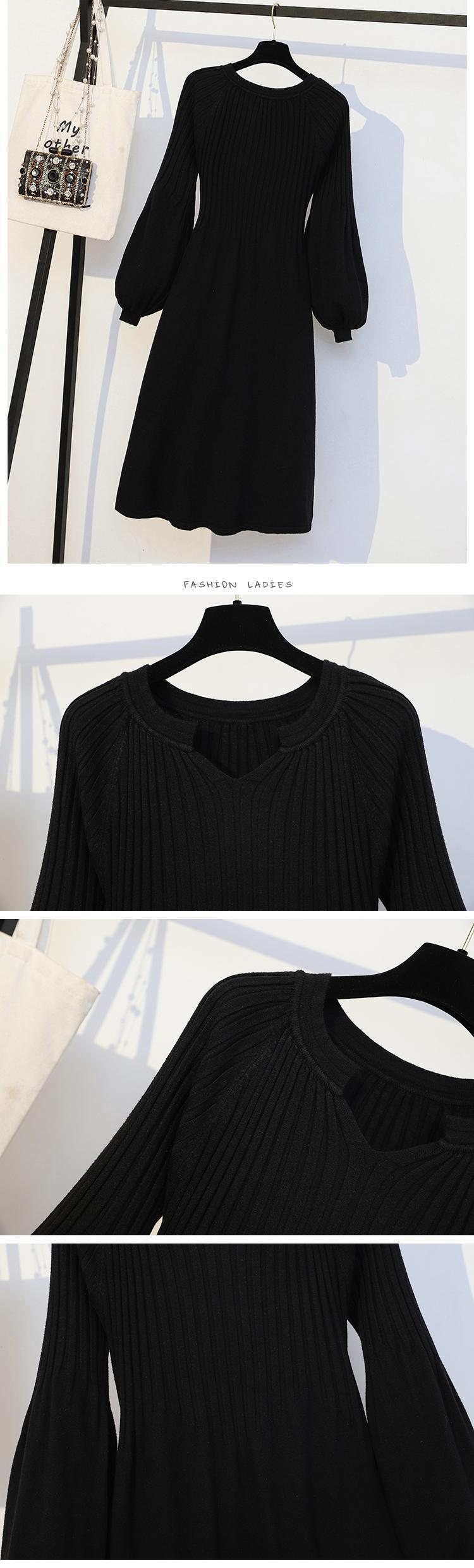大きいサイズの婦人服 2023 春の新しいスタイルの太った姉妹スリムなウエストが薄いボディをカバーする純粋な色の気質のオールマッチ ニット ドレス 大きめサイズ スプリング 春物 ピュア 8884154541091946