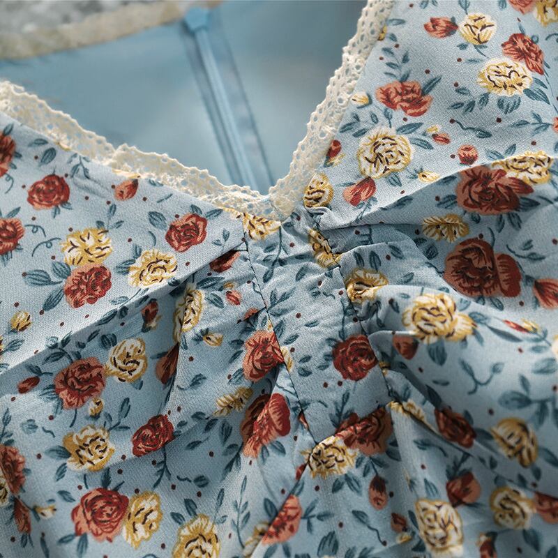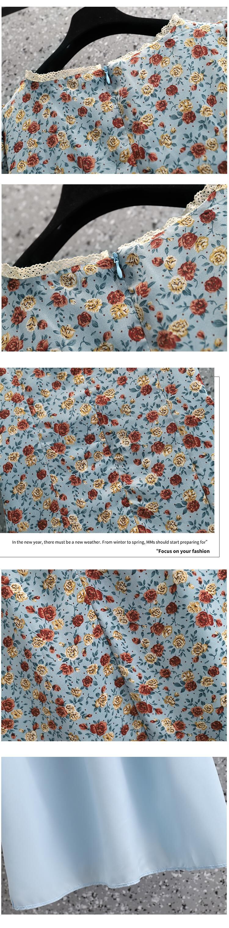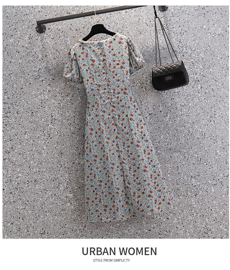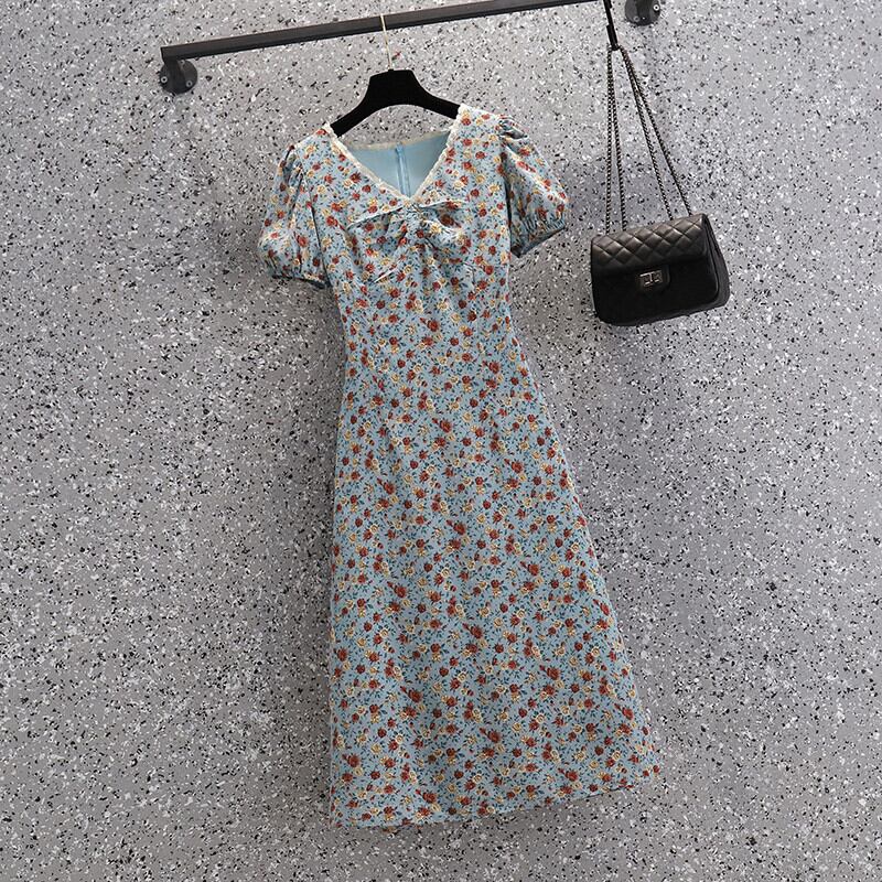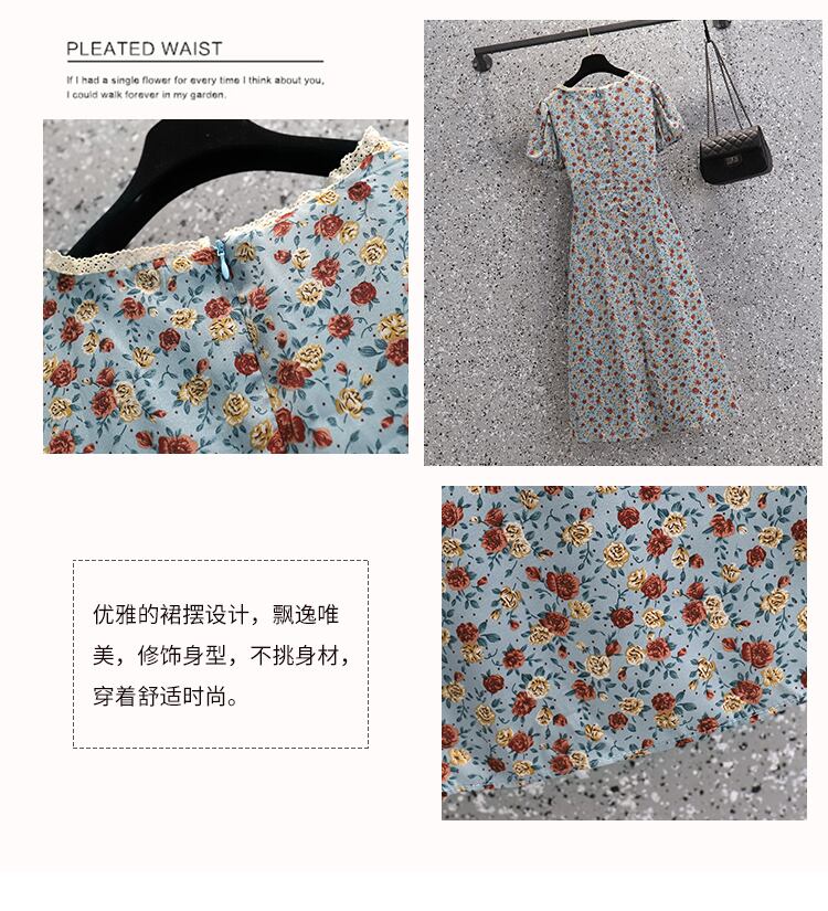 プラスサイズの婦人服2023ファットシスター夏の新しいフランスのレトロなロングスカート優しい風甘い花柄のドレス 大きめサイズ 大人ガーリー スウィート キュート カジュアル サマー 夏物 8884199015525355