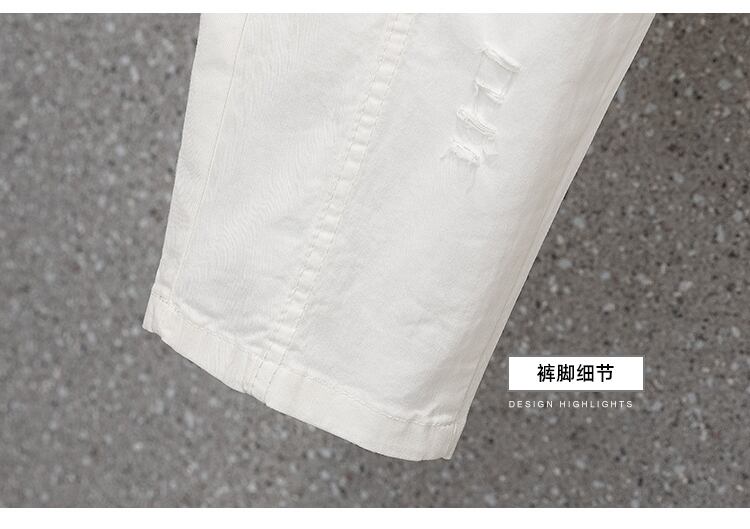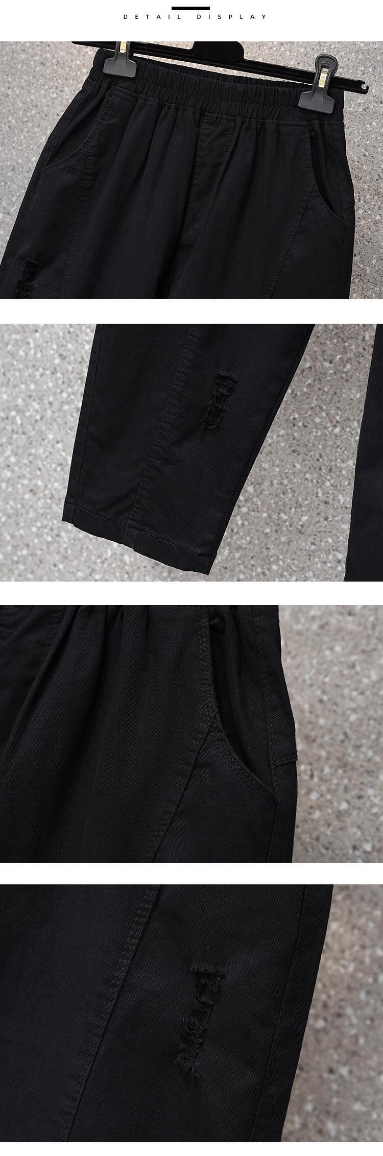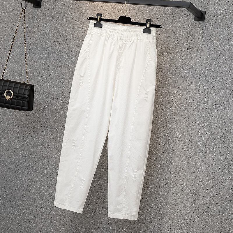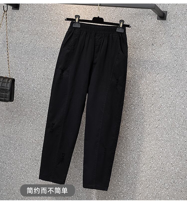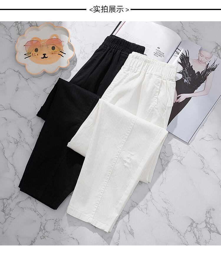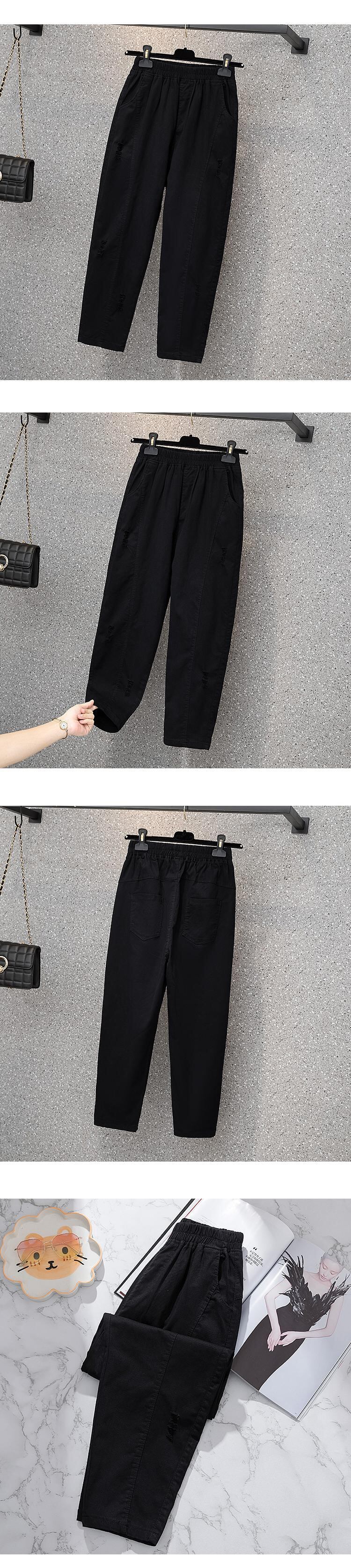 プラスサイズの婦人服 2023 ファットシスター夏新弾性ウエストカジュアルパンツ薄肉セクション穴 9 点大根パンツ女性 エラスティック 伸縮 大きめサイズ サマー 夏物 8884171193207162