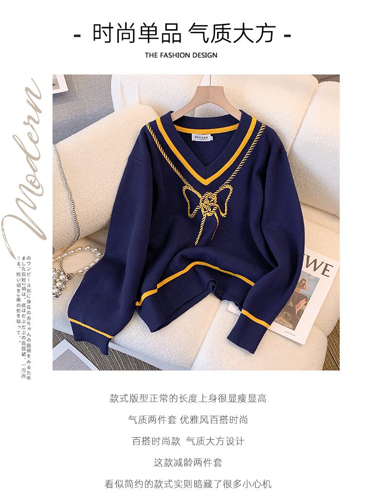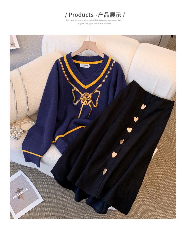 プラスサイズの婦人服 2023 ファットシスター春の新スリム刺繍ニット長袖セータースカート 2 点セット ロング レッド 大きめサイズ スプリング 春物 8884165096500162