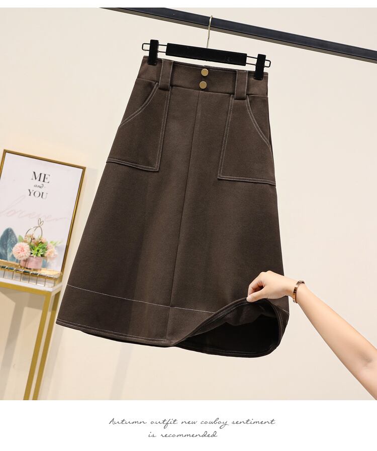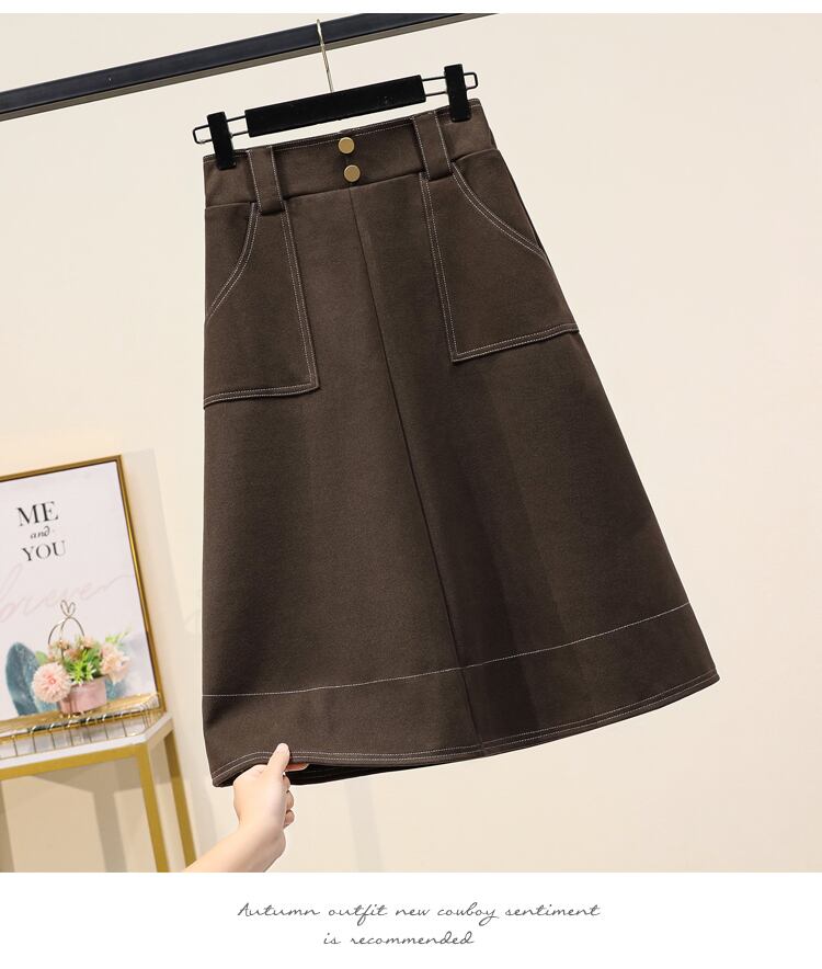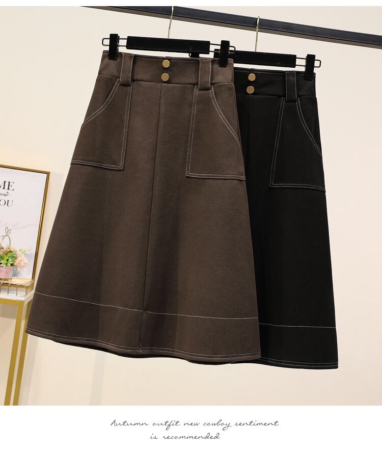 プラスサイズの婦人服 2023 トレンディな女性の春の新しいファットシスターウールミッドレングスの厚手の緩い A ラインのカジュアルなスカート 大きめサイズ スプリング 春物 Aライン 8884175372488905