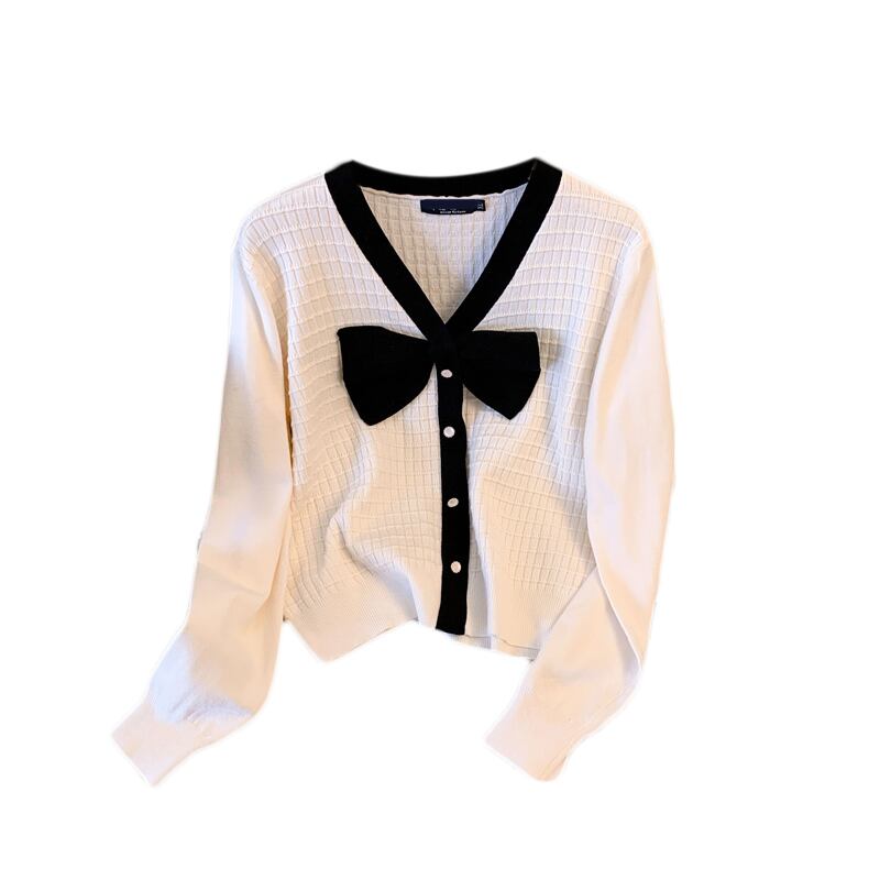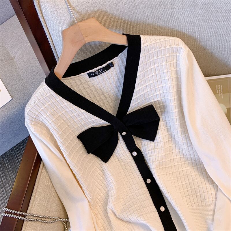 大きいサイズの婦人服 2023 春の新しいスタイルの太った妹は薄い気質のちょう結びのデザインのシックな V ネックのセーターに見えます リボン 大きめサイズ スプリング 春物 Vネック 8884186339819134