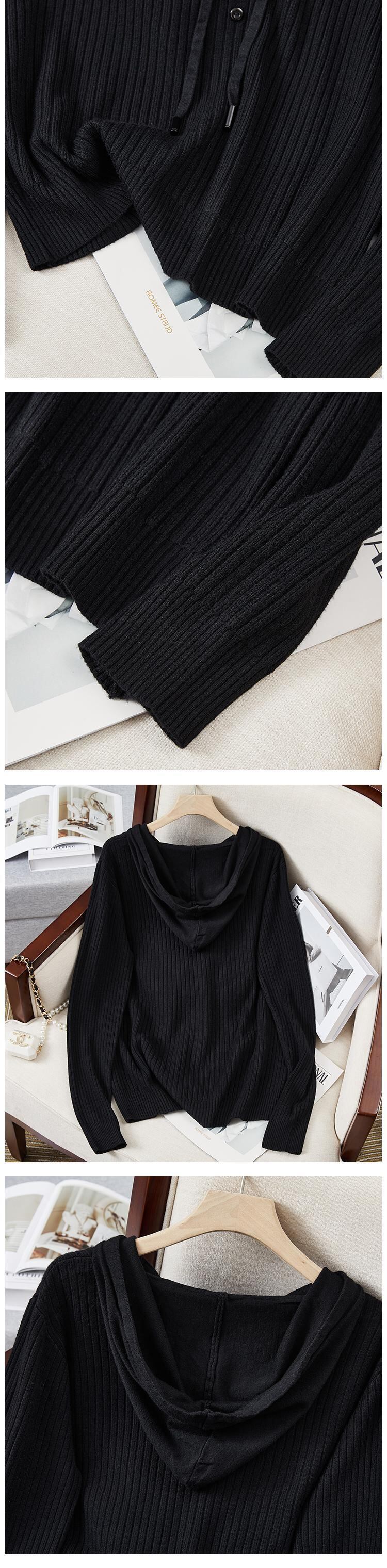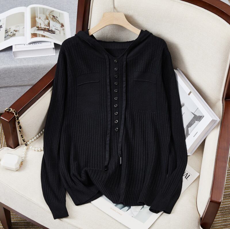 大きいサイズの婦人服 2023 春の新しいスタイルの太った姉妹は、薄くてゆったりとした無地の気質のフード付きのカジュアルな年齢を減らすニットのセーターに見えます 大きめサイズ スプリング 春物 ソリッドカラー 8884128606861141