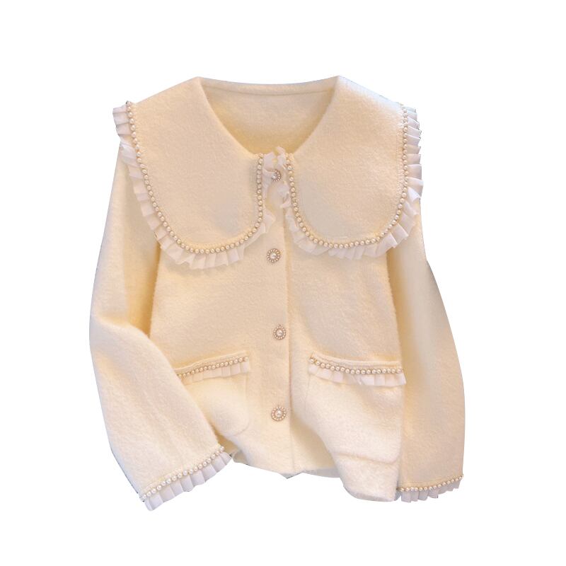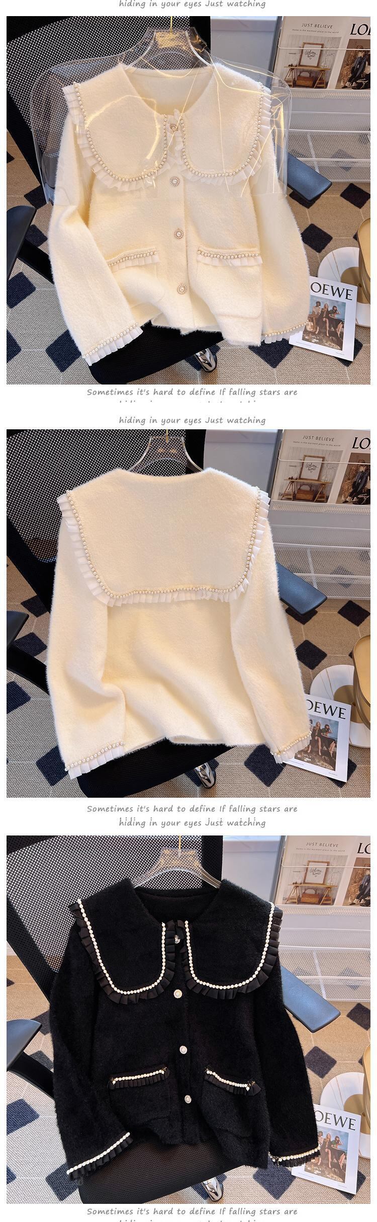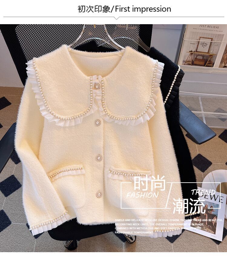 プラスサイズの婦人服 2023 ファットシスター春の新スウィートネイビーカラーパールバックルオールマッチセーターカーディガンジャケット 大きめサイズ 大人ガーリー キュート カジュアル スプリング 春物 真珠 8884187128888448