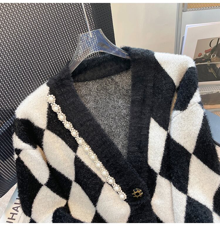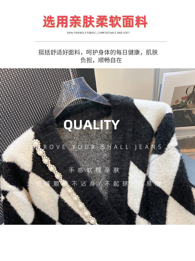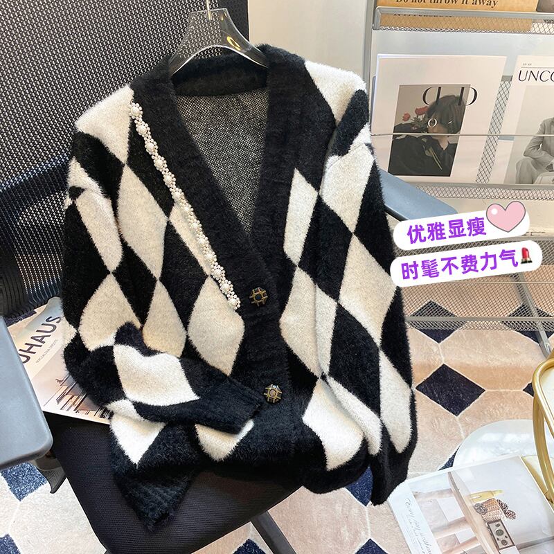 プラスサイズの婦人服 2023 ファットシスター春の新ファッションカラーコントラスト緩い薄いカーディガンオールマッチセータージャケット女性 大きめサイズ スプリング 春物 8884137560618263
