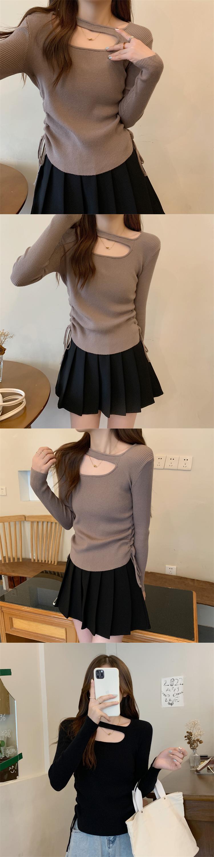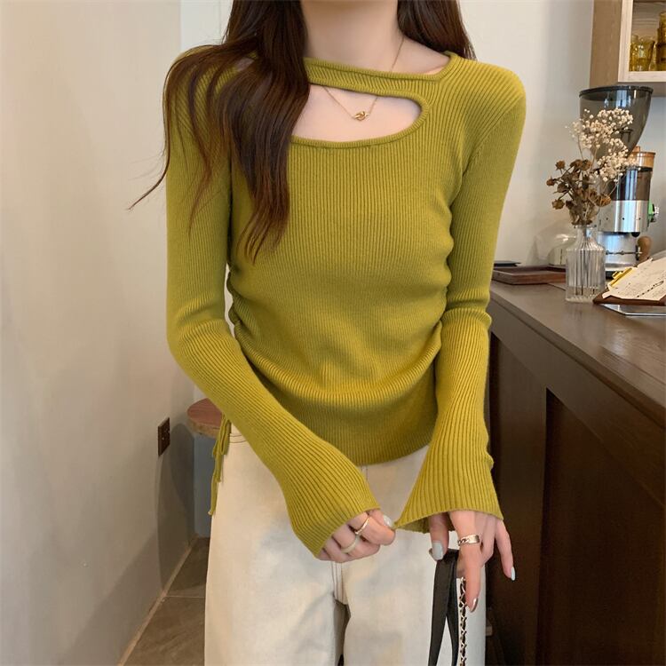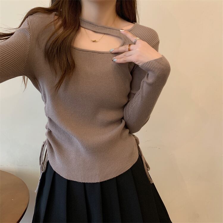 プラスサイズの婦人服 2023 トレンディな女性の春の新しい太った姉妹くり抜かれたひだ巾着バージョンのスリム無地セーター 大きめサイズ スプリング 春物 ソリッドカラー 8884183103742173