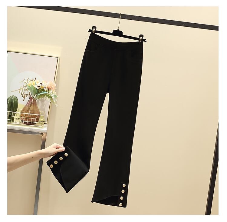 大サイズの婦人服 2023 春服脂肪姉妹新ファッションハイウエスト薄型ズボンカジュアルスリットフレアズボン女性 ハイウェスト レッド 大きめサイズ スプリング 春物 8884179388444794
