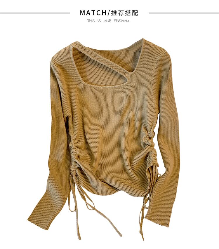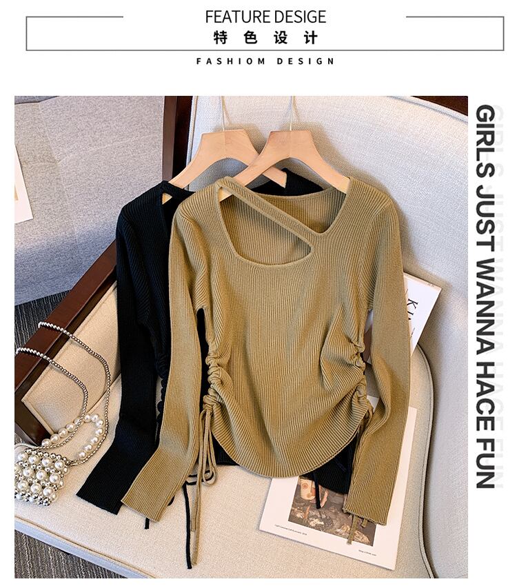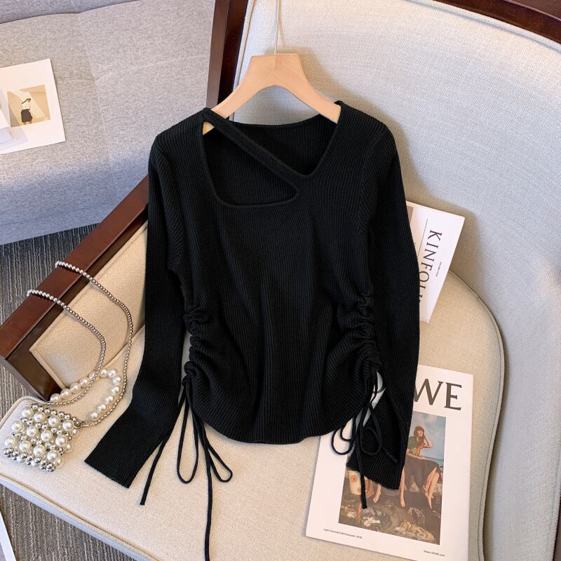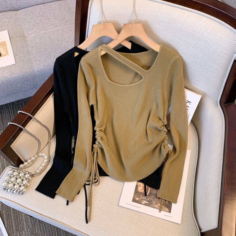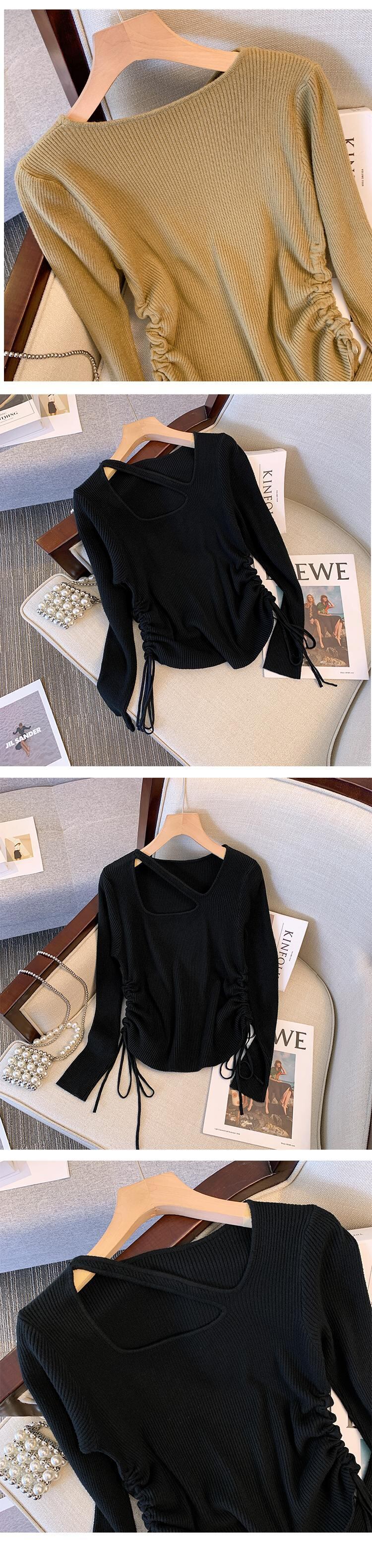 プラスサイズの婦人服 2023 ファットシスター春の新オールマッチ薄い巾着デザインニット底入れシャツトップ 大きめサイズ スプリング 春物 888412725217846