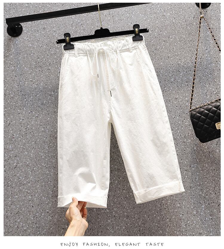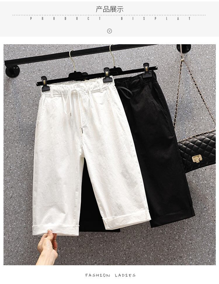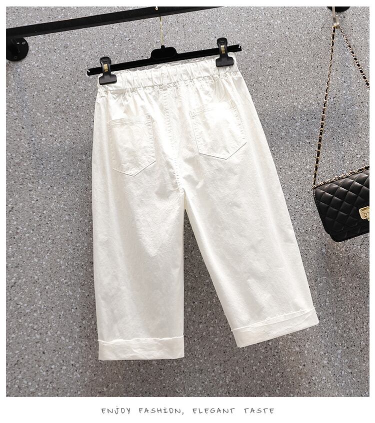 プラスサイズの婦人服 2023 夏の新しいファットシスター弾性ウエスト弾性カジュアルハイウエストストレートクロップドジーンズ ハイウェスト エラスティック 伸縮 大きめサイズ サマー 夏物 8884168026910074