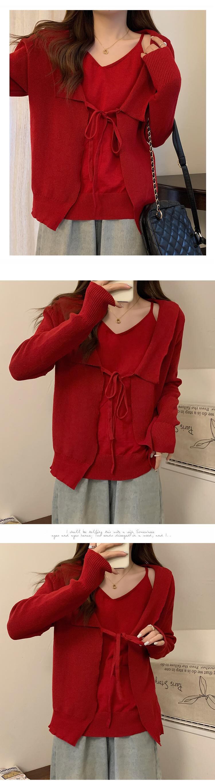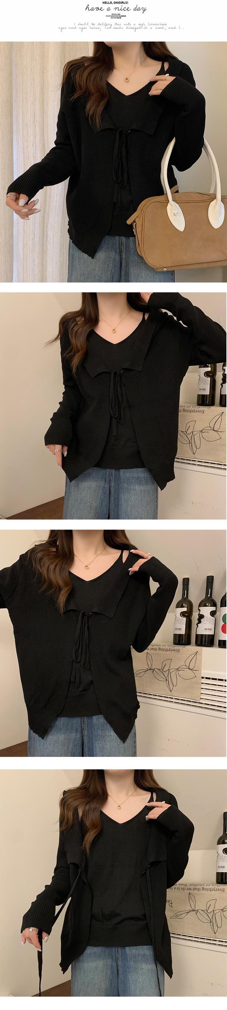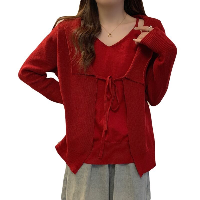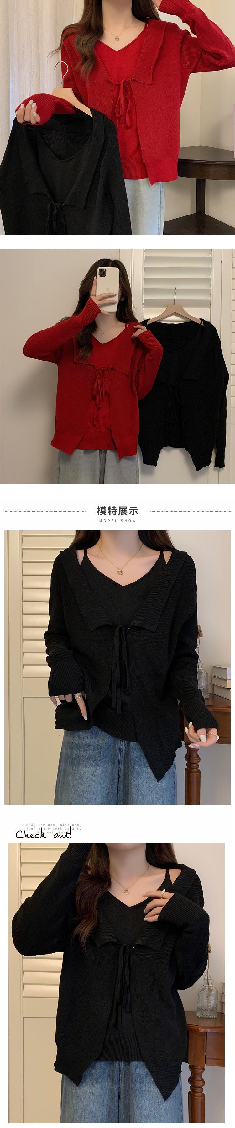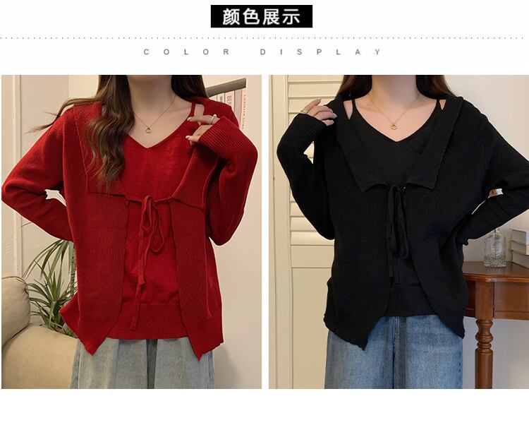 プラスサイズの婦人服 2023 春の新しいスタイルの太った姉妹バージョン緩い巾着偽のツーピースの薄い v ネックの腹を覆うセーター 大きめサイズ スプリング 春物 Vネック 8884144524351342