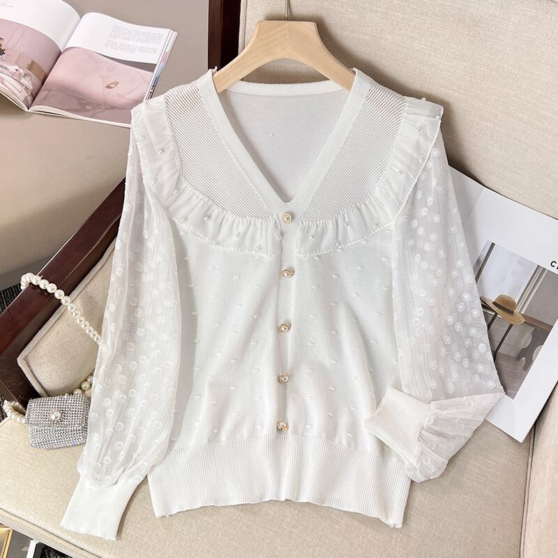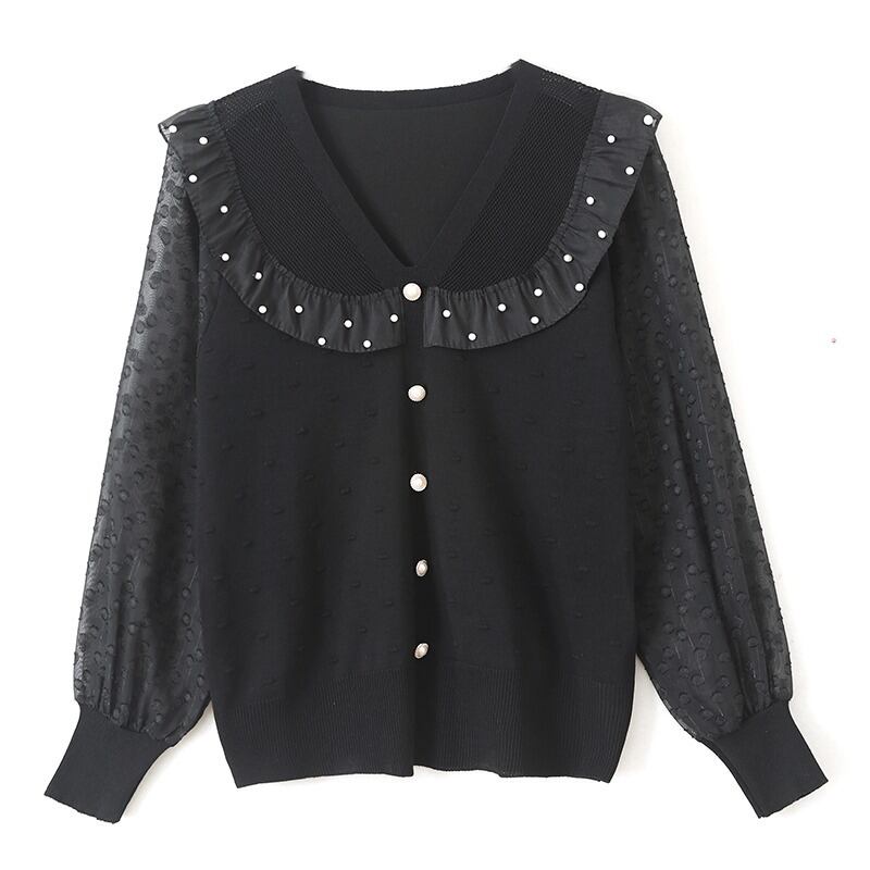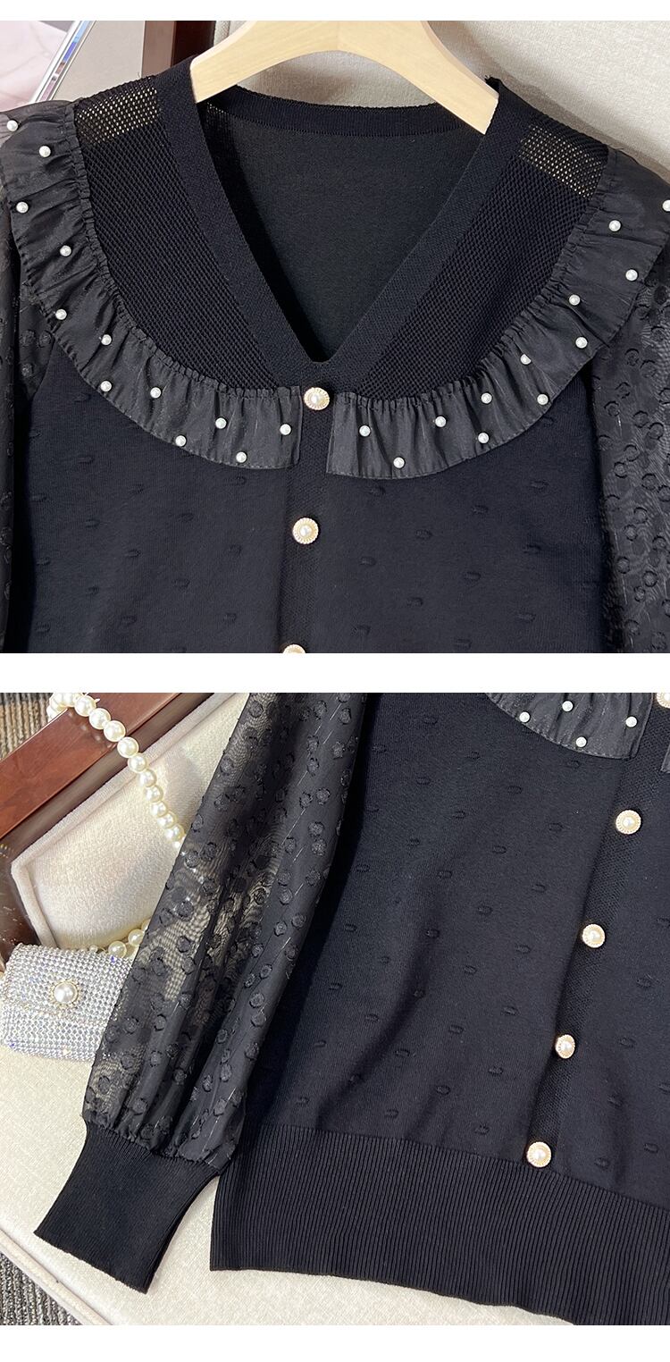 大きいサイズの婦人服 2023 年春の新しい太った姉妹のデザインは、薄くてエレガントなスタイルのレースのビーズのステッチのニットのセーターに見えます 大きめサイズ スプリング 春物 8884146376817602