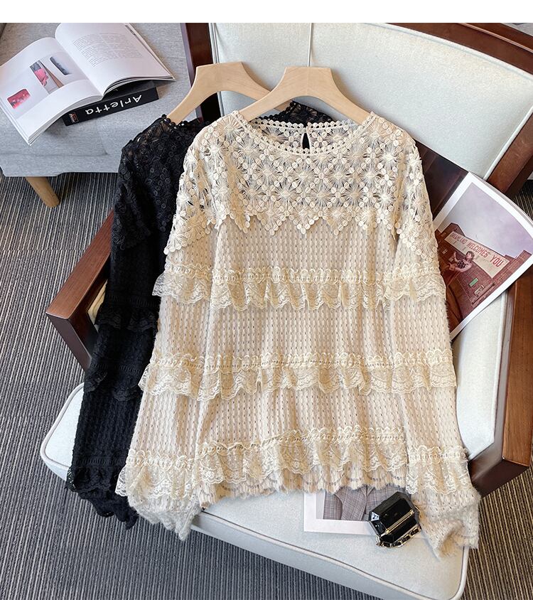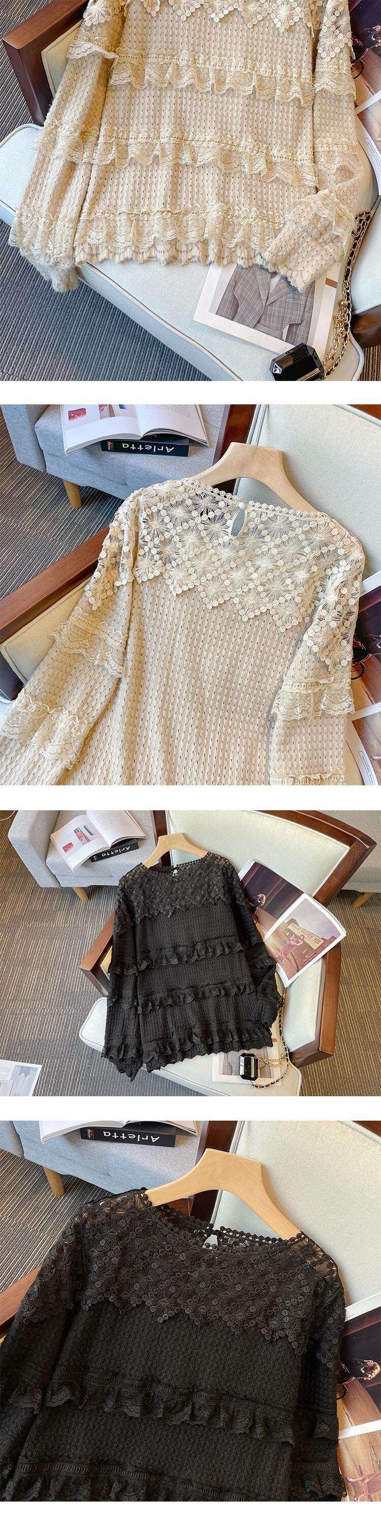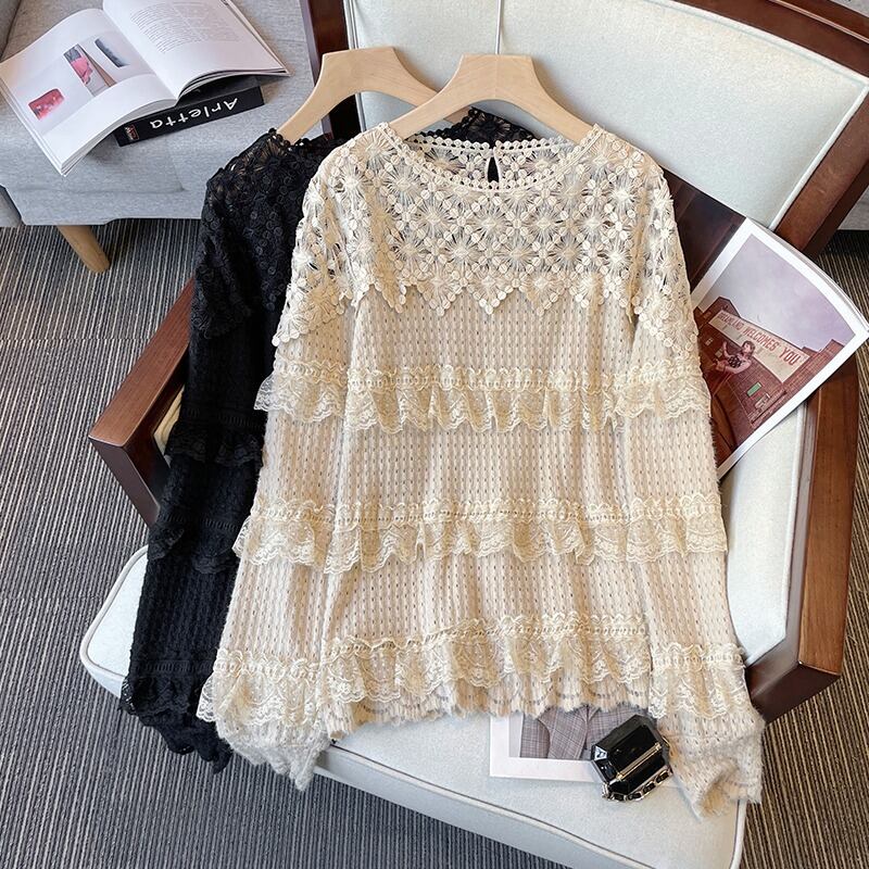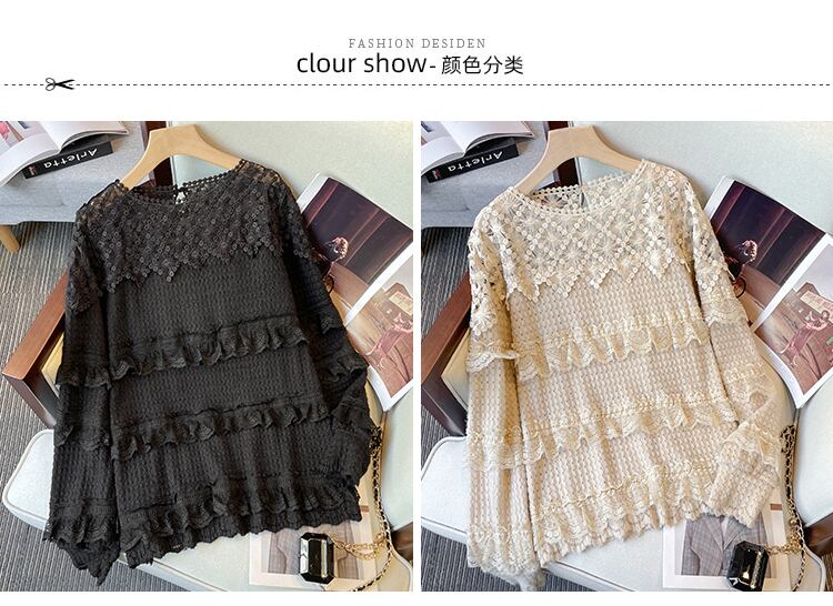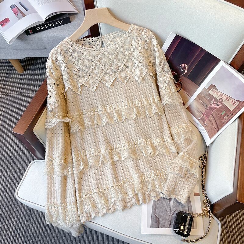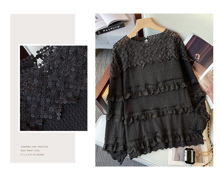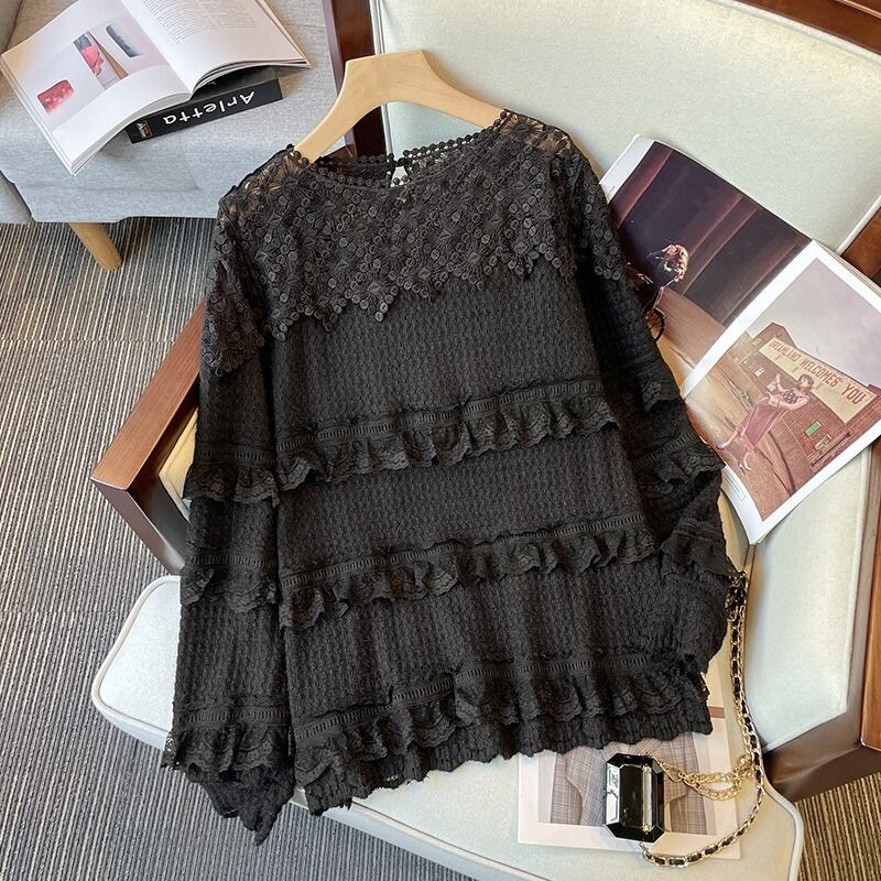 プラスサイズの婦人服 2023 春の新しいファットシスターレースステッチシャツシックなニッチな気質洋風トップ 大きめサイズ スプリング 春物 8884172314215008