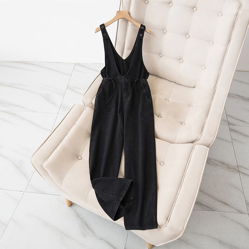 プラスサイズの婦人服 2023 春服ファットシスターズ新気質オールマッチ年齢引き下げ無地デニムサスペンダーワイドレッグパンツ女性 大きめサイズ スプリング 春物 ソリッドカラー 8884158337155206