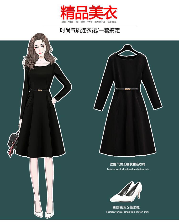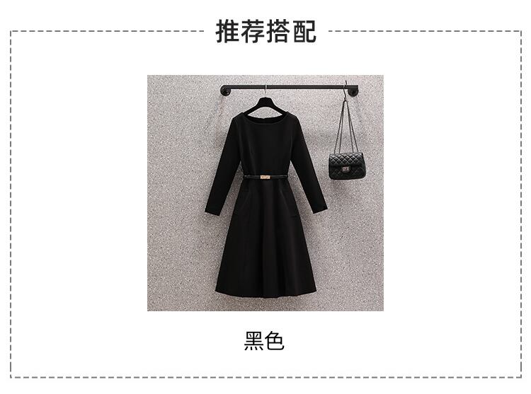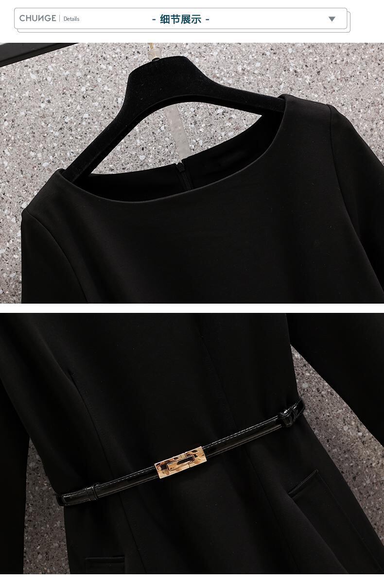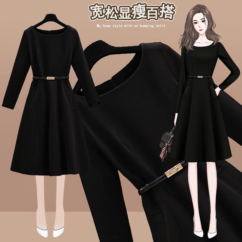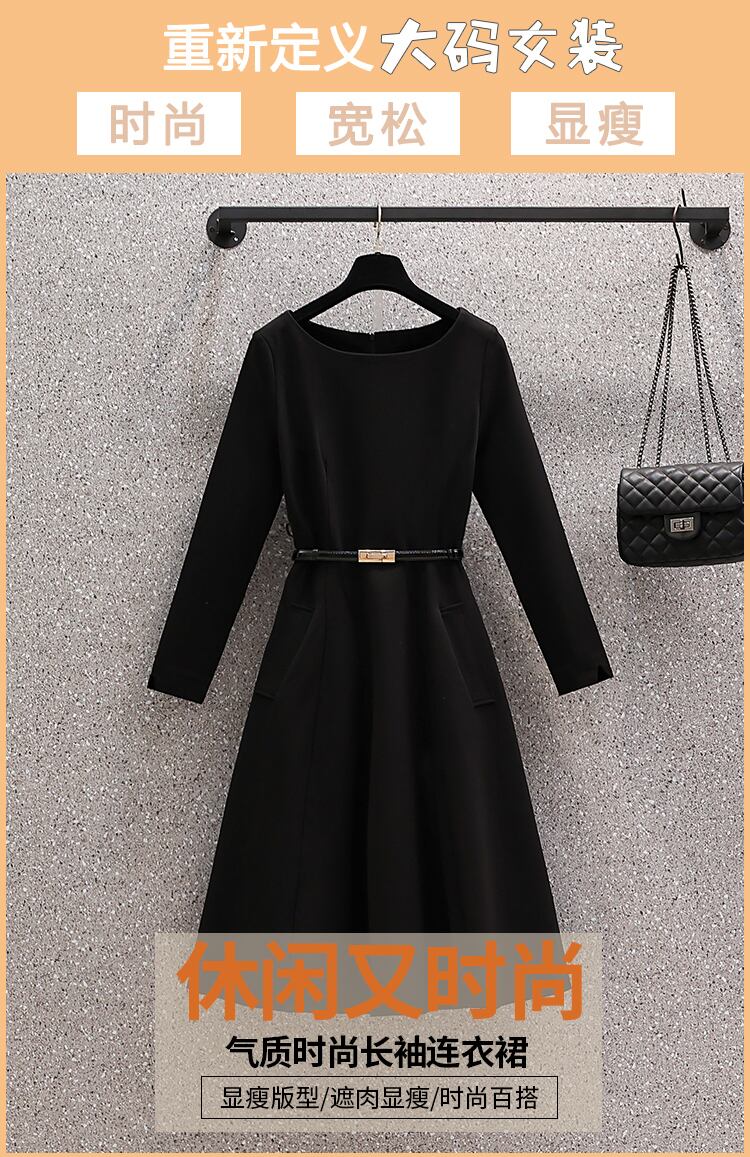 プラスサイズの婦人服2023ファットシスター春の新気質スリムミッドレングスブラックAラインスカートドレス女性 大きめサイズ スプリング 春物 8884111094346465