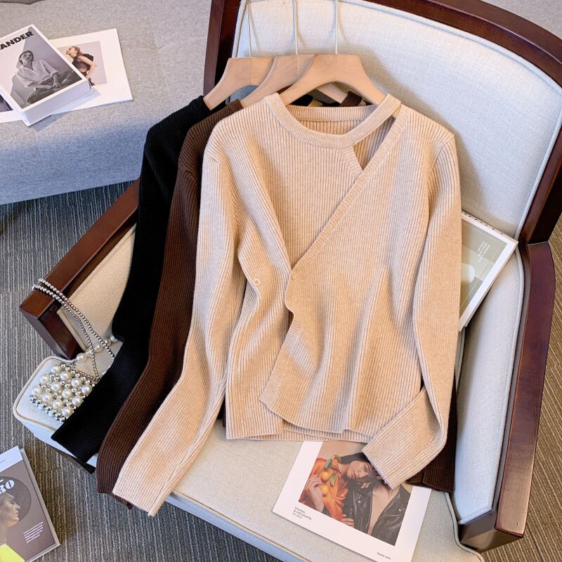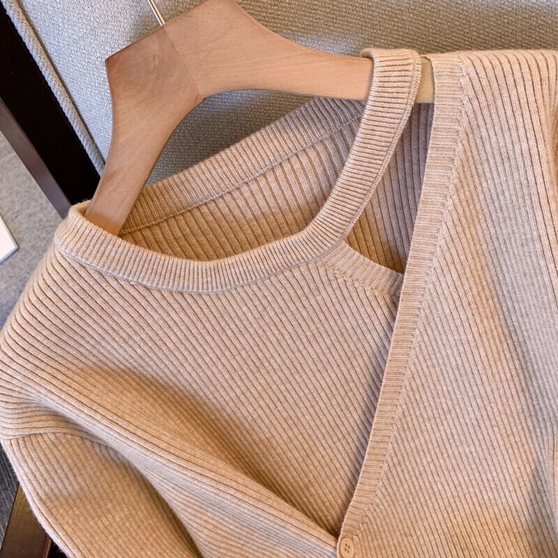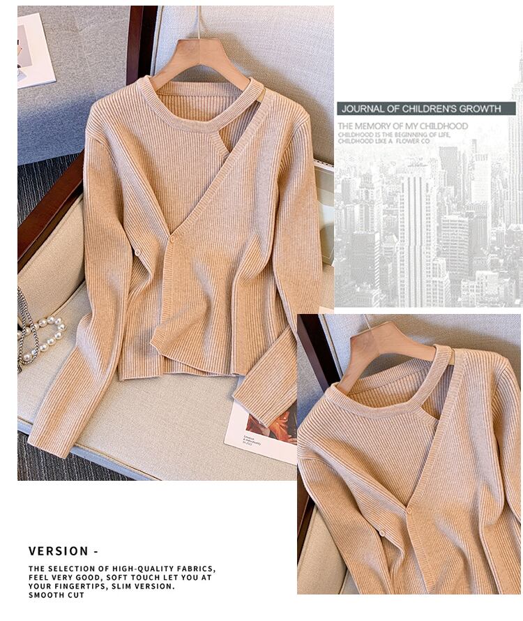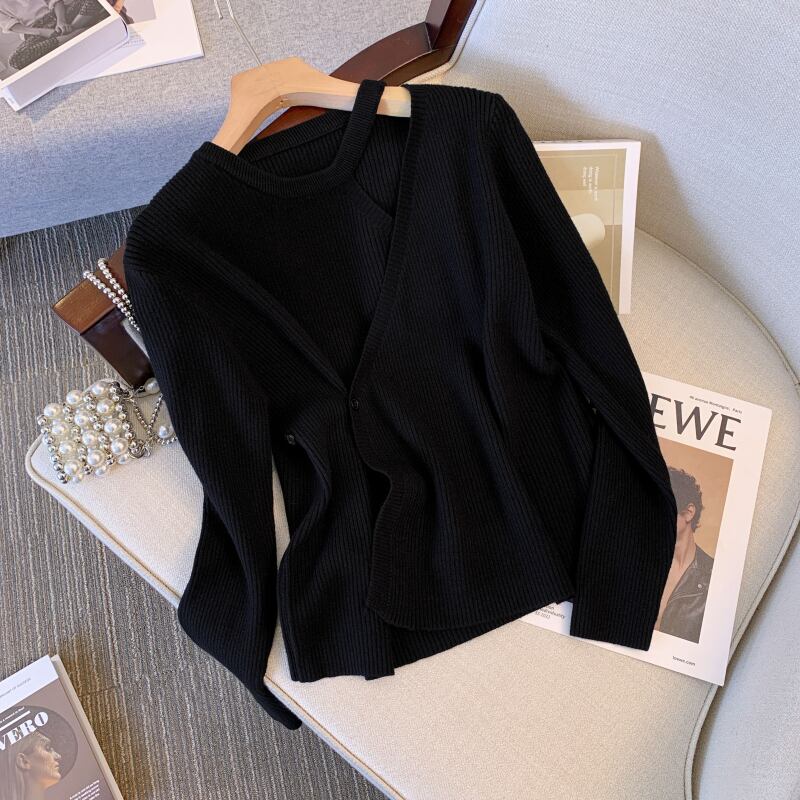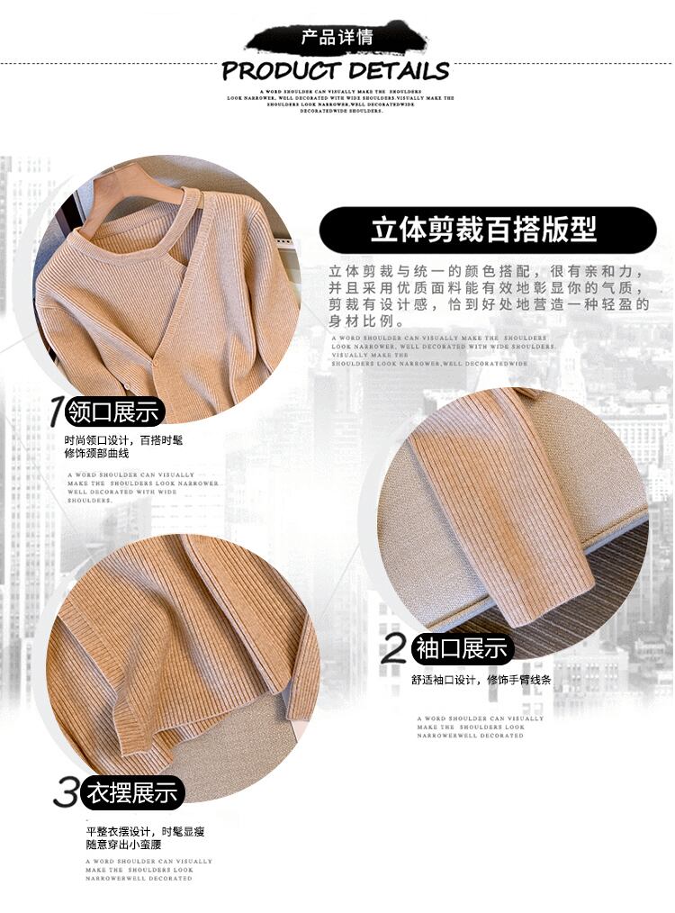 プラスサイズの婦人服 2023 ファットシスター春の新しいニッチ偽ツーピースニットセータートップ肥厚ボトミングセーター 大きめサイズ スプリング 春物 8884127673204953