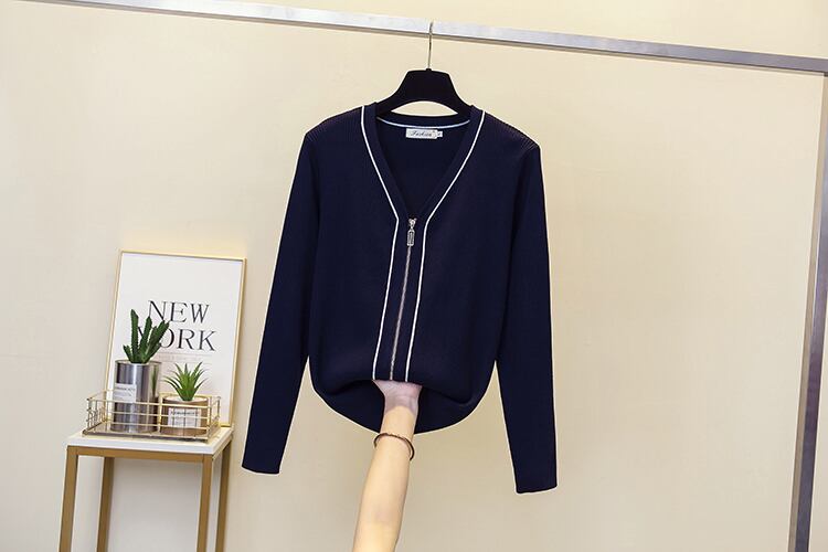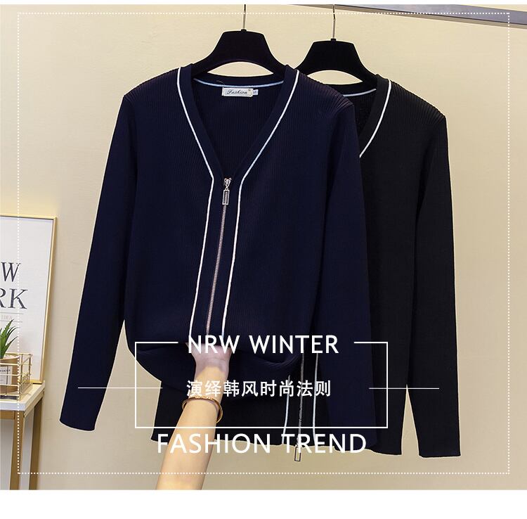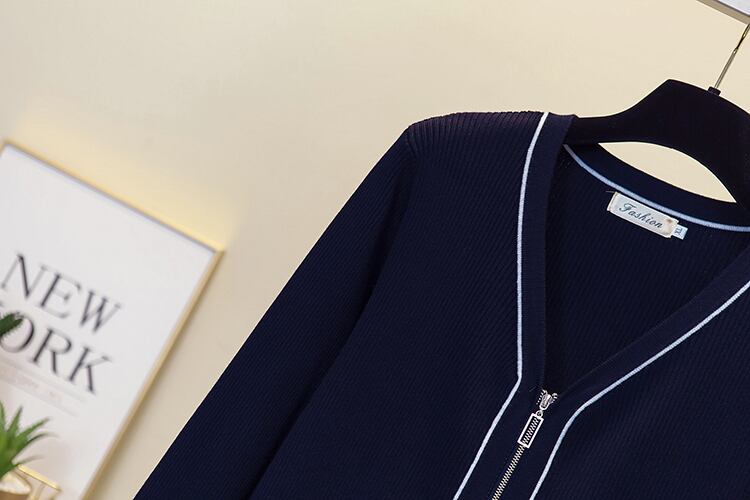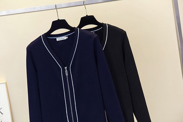 プラスサイズの婦人服 2023 春の新しいファットシスターデザイン気質 V ネックジッパーカーディガン長袖カジュアルトップ ロング 大きめサイズ スプリング 春物 Vネック 8884168228566878
