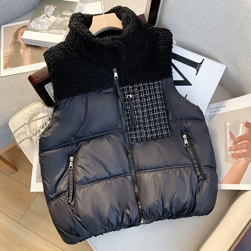 プラスサイズの婦人服 2022 冬の新しいファットシスターダウンコットンベストバージョンベストステッチノースリーブコットンコート 大きめサイズ ウィンター 冬物 8884189834605413