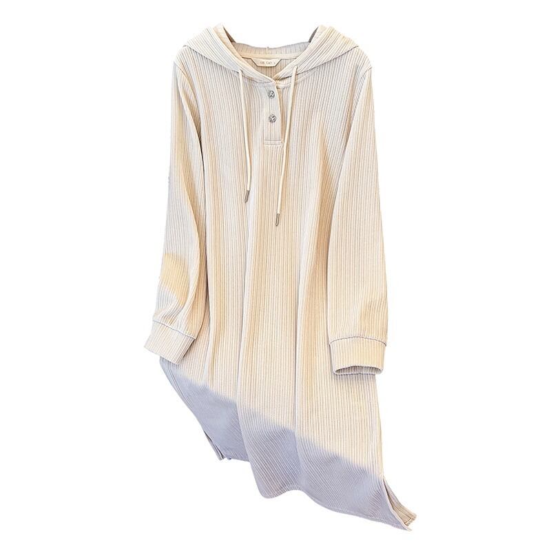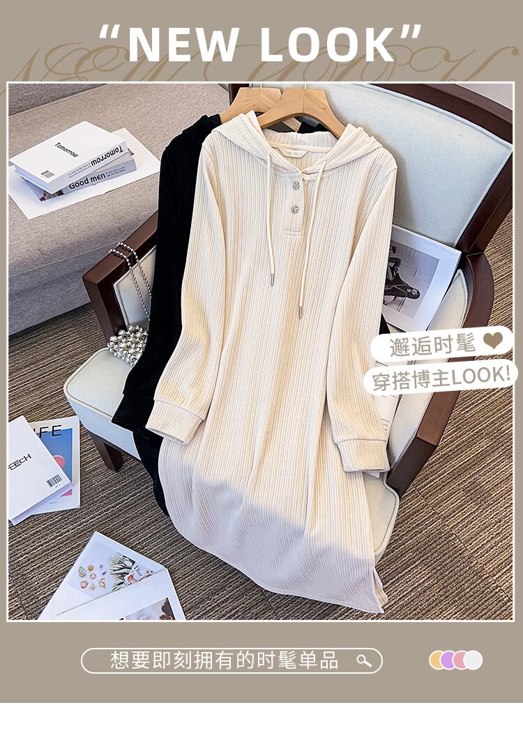 プラスサイズの婦人服2023トレンディな女性の春の新しいファットシスター長袖オールマッチソリッドカラーの気質の薄いフード付きドレス ロング 大きめサイズ スプリング 春物 8884143490583414