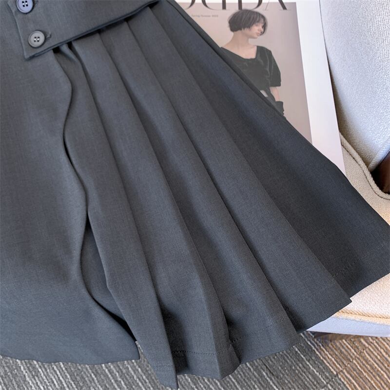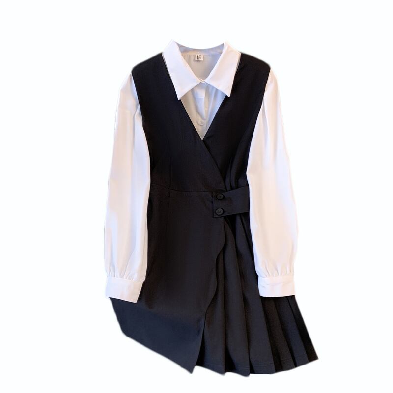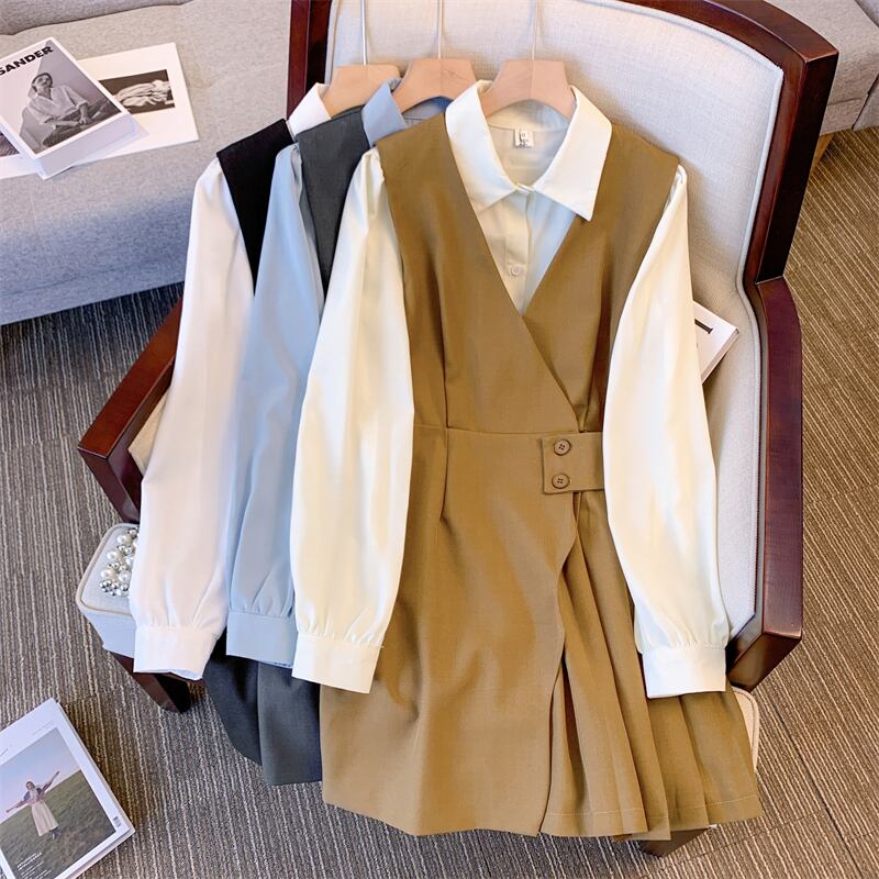 大きいサイズの婦人服 2023 春の新しい太った姉妹のシックなミッドレングスのベストの年齢を減らす無地のシャツのツーピースのスーツ 大きめサイズ スプリング 春物 ソリッドカラー 8884164388672542
