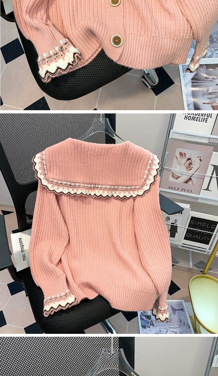 プラスサイズの婦人服 2023 ファットシスター春の新甘い人形の襟のセーター緩い厚いニットカーディガントップ 大きめサイズ 大人ガーリー スウィート キュート カジュアル スプリング 春物 8884168688609593