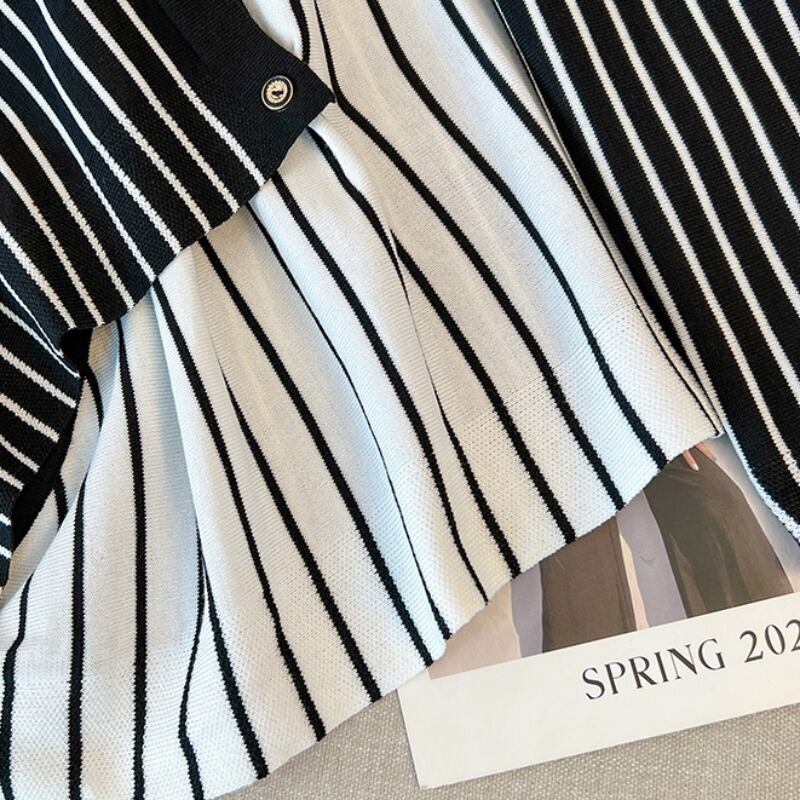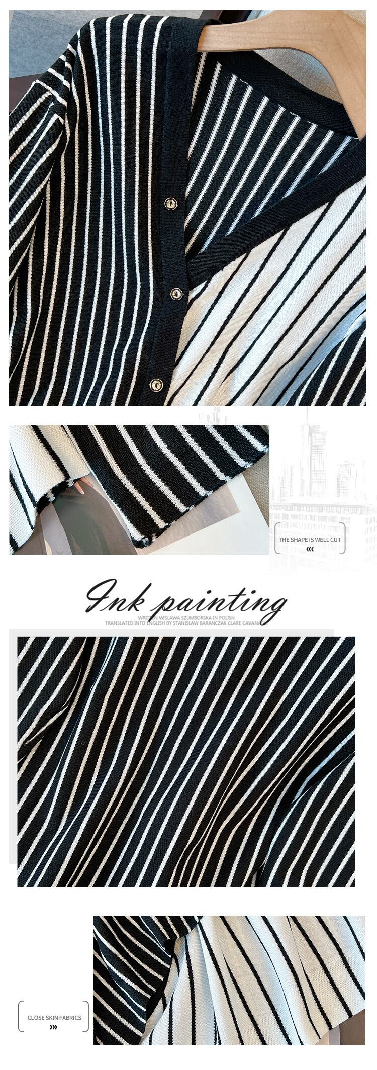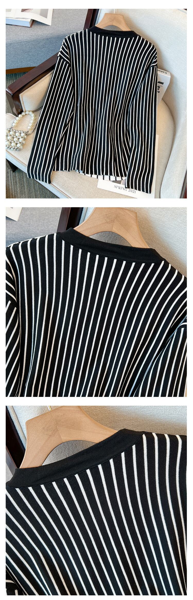 大きいサイズの婦人服 2023 春の新しいファット シスター ストライプ デザイン感覚 V ネック シックな長袖カジュアル ボトムス シャツ ロング 大きめサイズ スプリング 春物 Vネック 8884140087196408