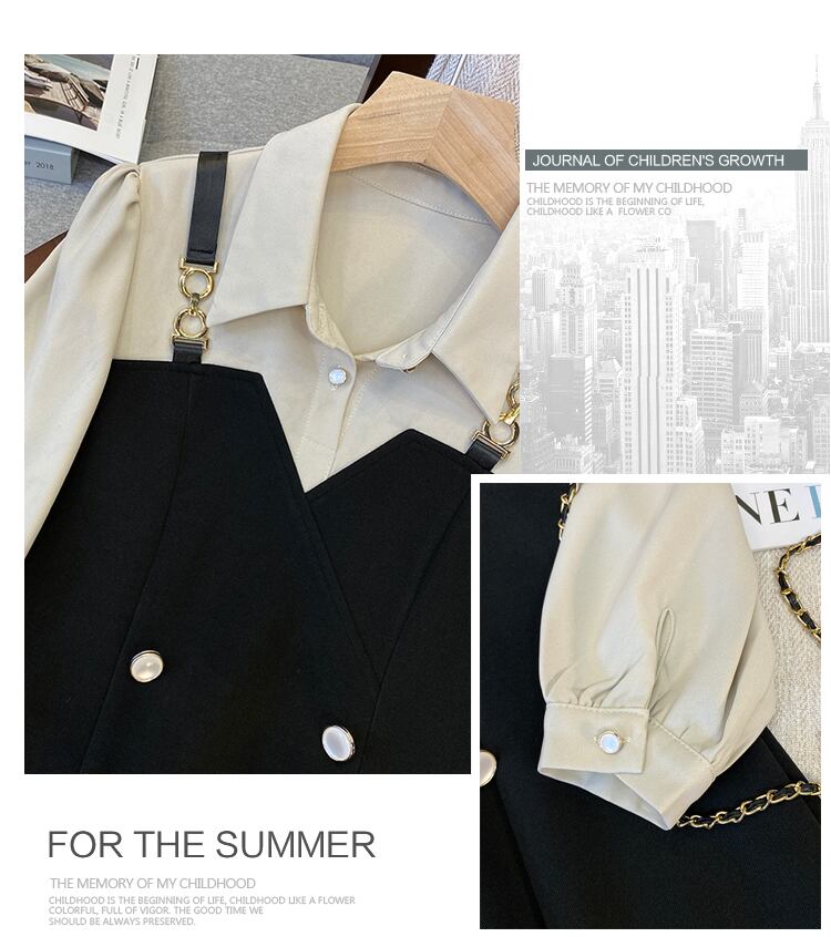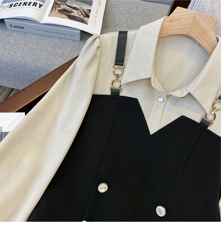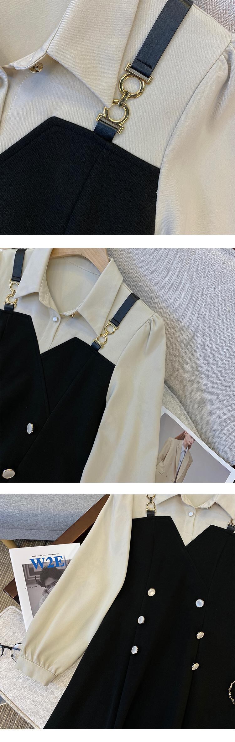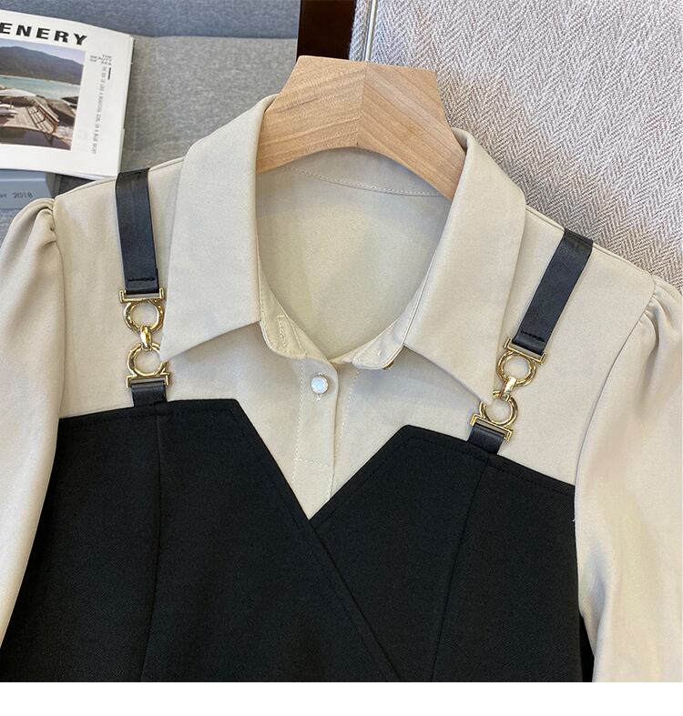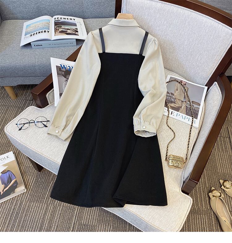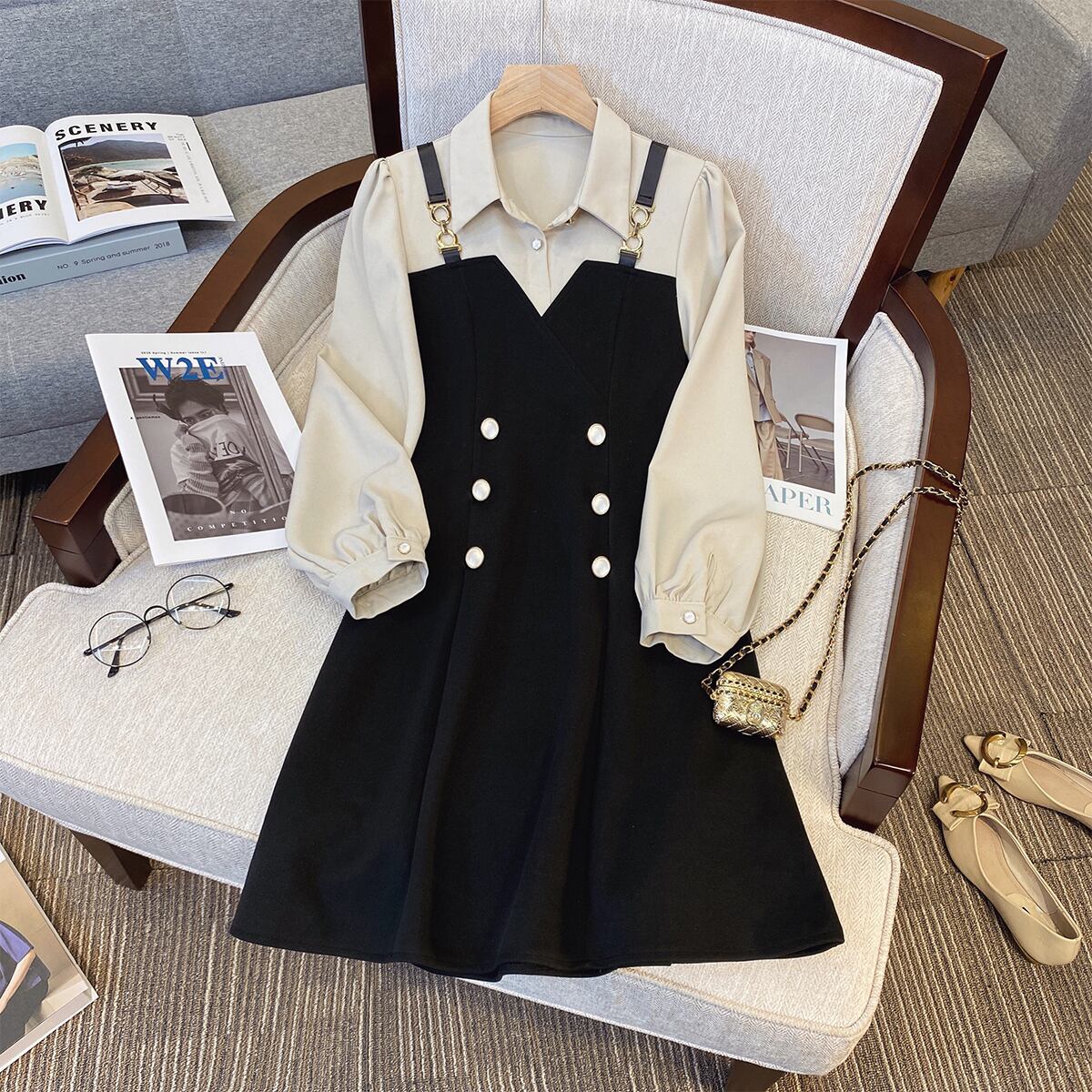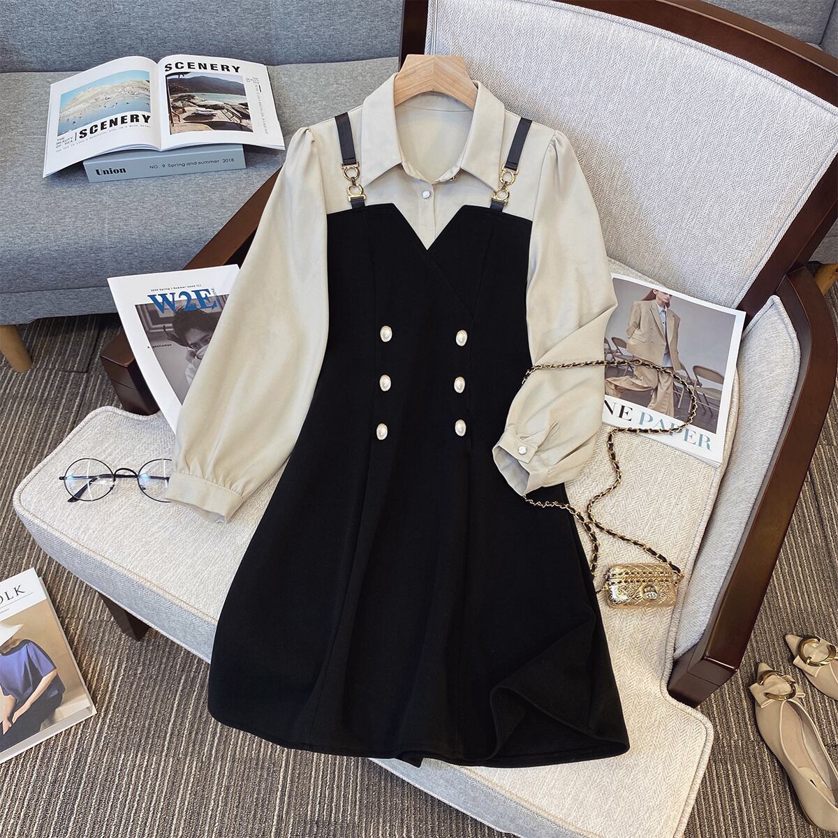 プラスサイズの婦人服 2023 脂肪姉妹春の新ファッションスプライシング偽二枚スリムウエスト長袖ドレス女性 ロング 大きめサイズ スプリング 春物 8884141277808357