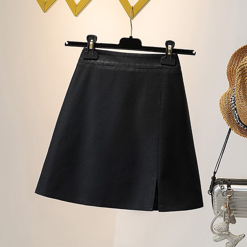 プラスサイズの婦人服 2023 脂肪姉妹春の新 pu レザースカートハイウエスト痩身単語バッグヒップスカート女性 ハイウェスト 大きめサイズ スプリング 春物 8884114235134224