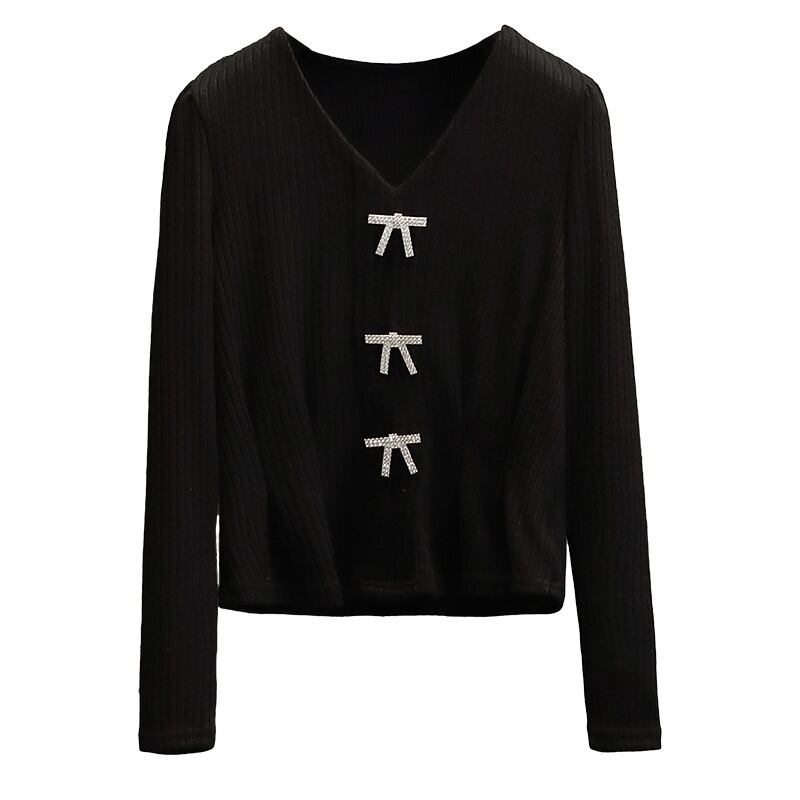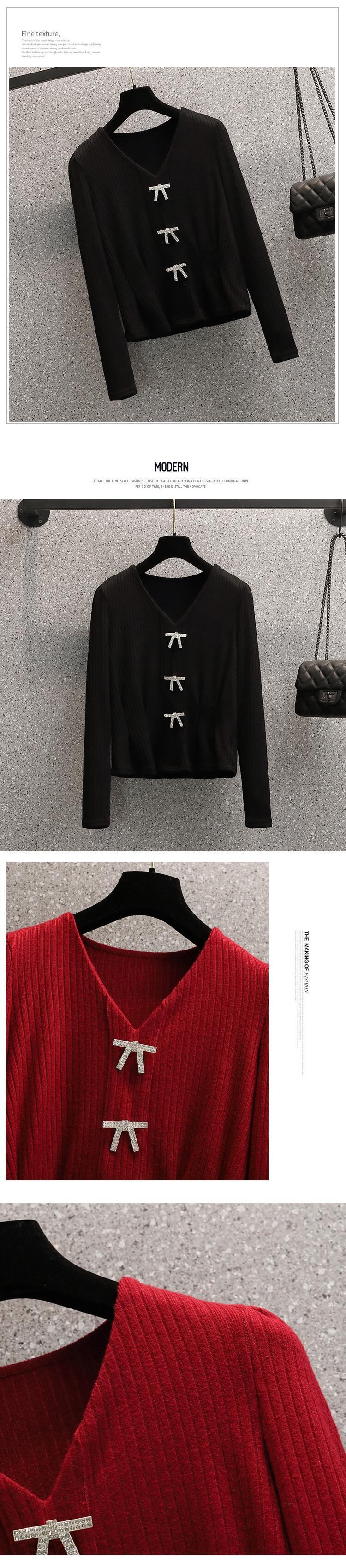 プラスサイズの婦人服 2023 春の新しいスタイルの太った姉妹のファッションの弓オールマッチスリムウエストカジュアルニットトップ リボン 大きめサイズ スプリング 春物 8884134006946299