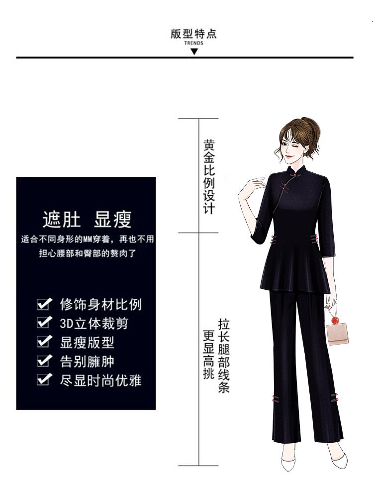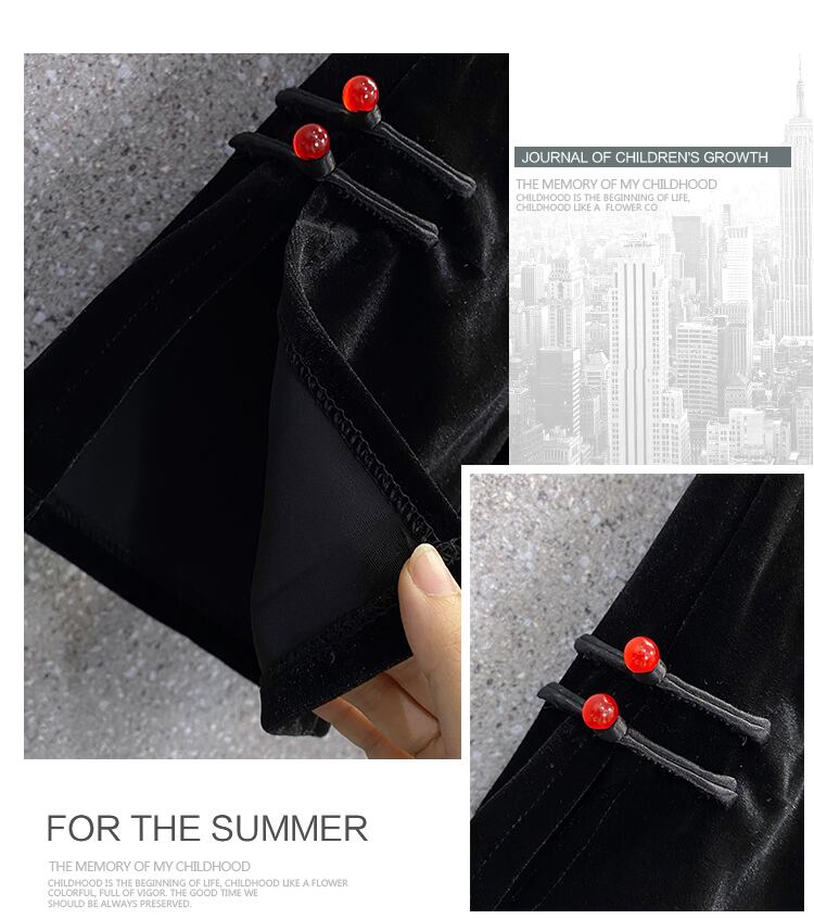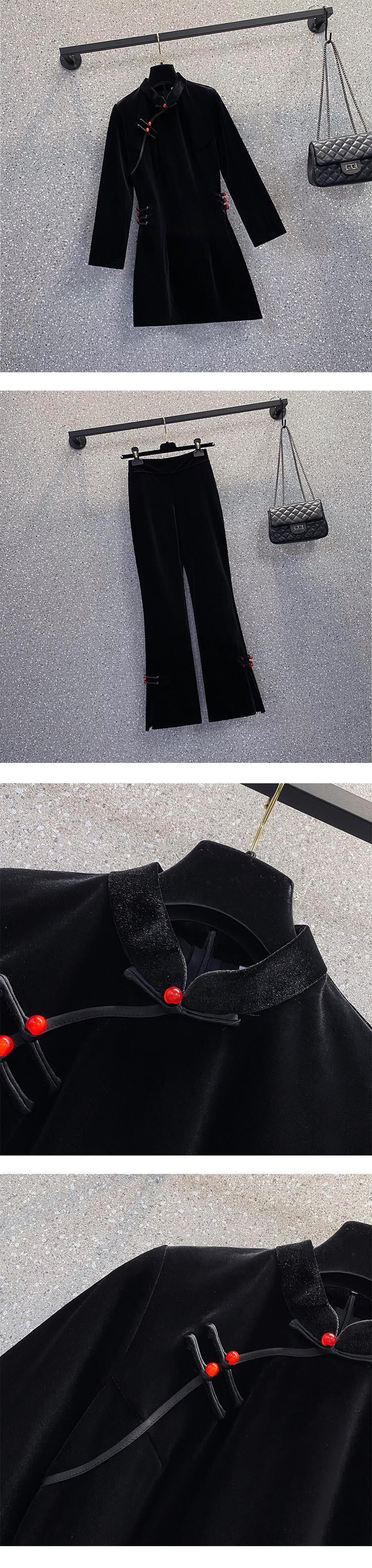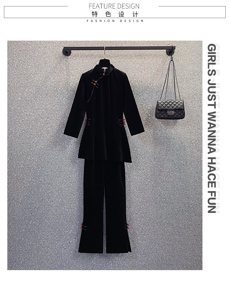 プラスサイズの婦人服 2023 脂肪姉妹春の新しいレトロなチャイナ ドレス韓服バックル トップ ゴールド ベルベット 2 点セット 大きめサイズ スプリング 春物 8884120610743942