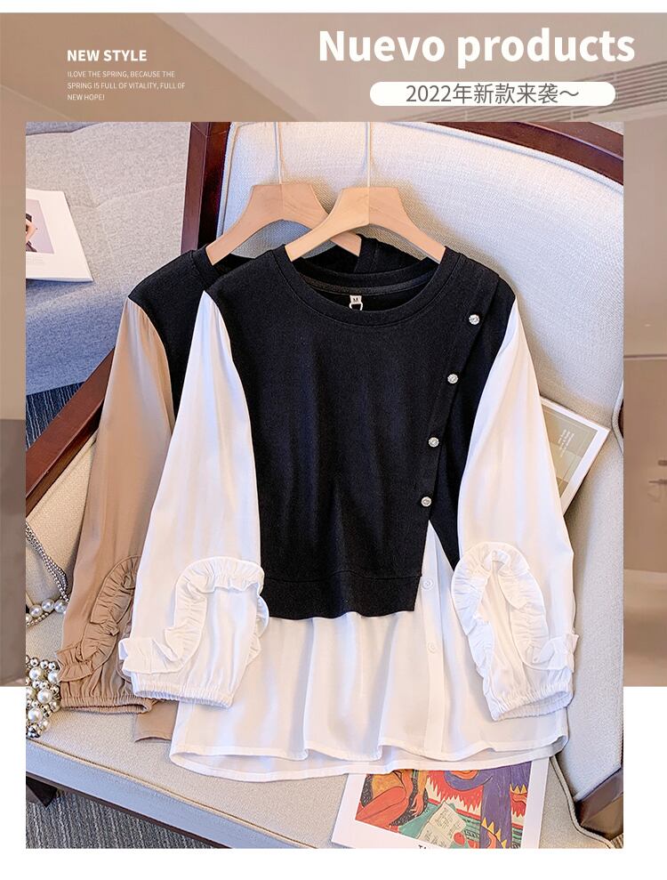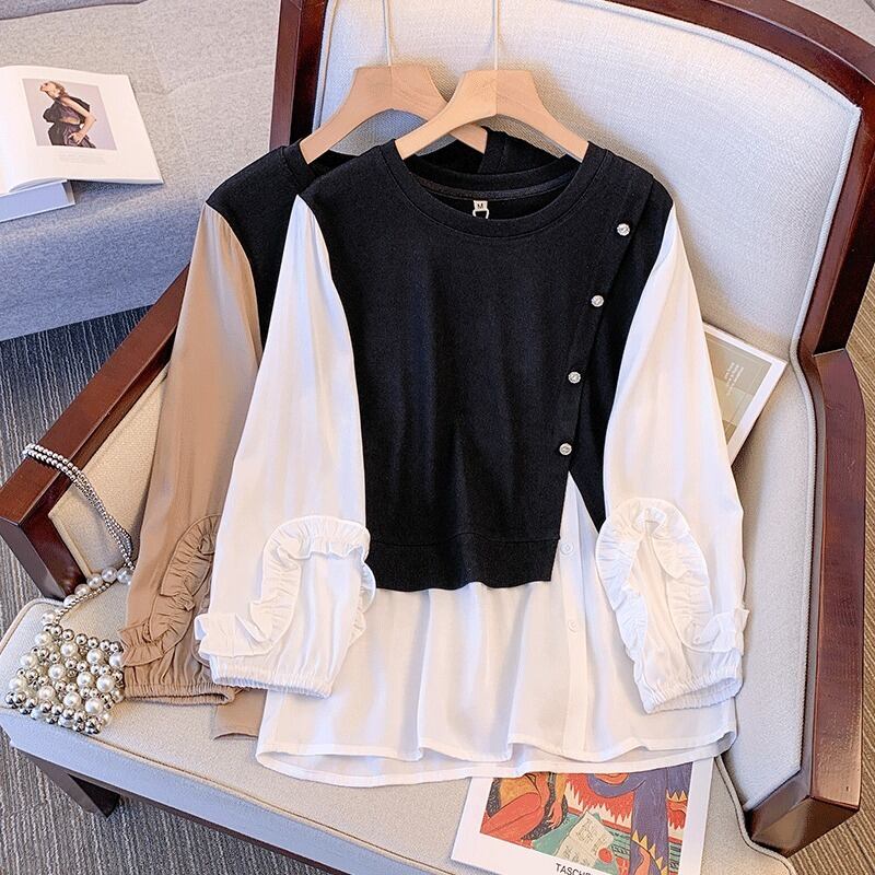 大きいサイズの婦人服 2023 春の新しい太った姉妹のファッション eign スタイルの年齢を減らすすべての試合のスプライシング偽のツーピースのシャツの女性 大きめサイズ スプリング 春物 8884118704016004