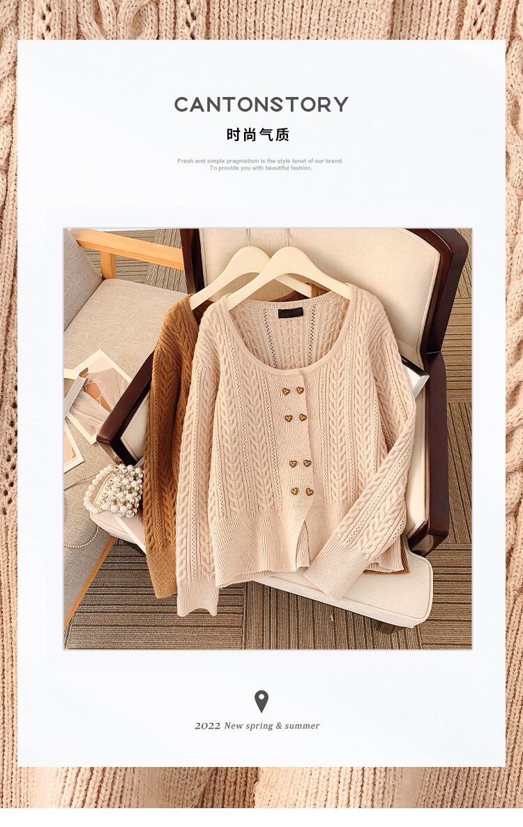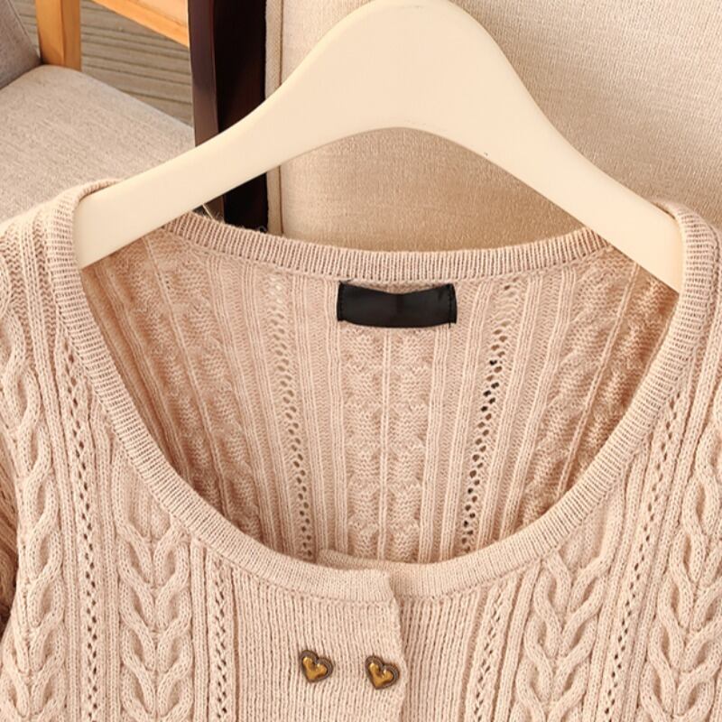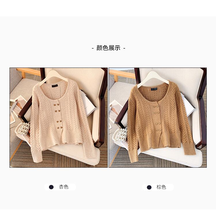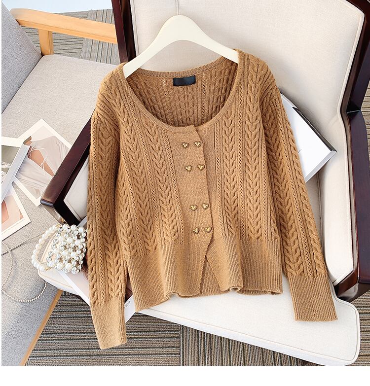 プラスサイズの婦人服 2023 春の新しいファットシスターレトロラウンドネックダブルブレスト無地カーディガン長袖ニットセーター女性 ロング 大きめサイズ スプリング 春物 Oネック ソリッドカラー 8884185456233337