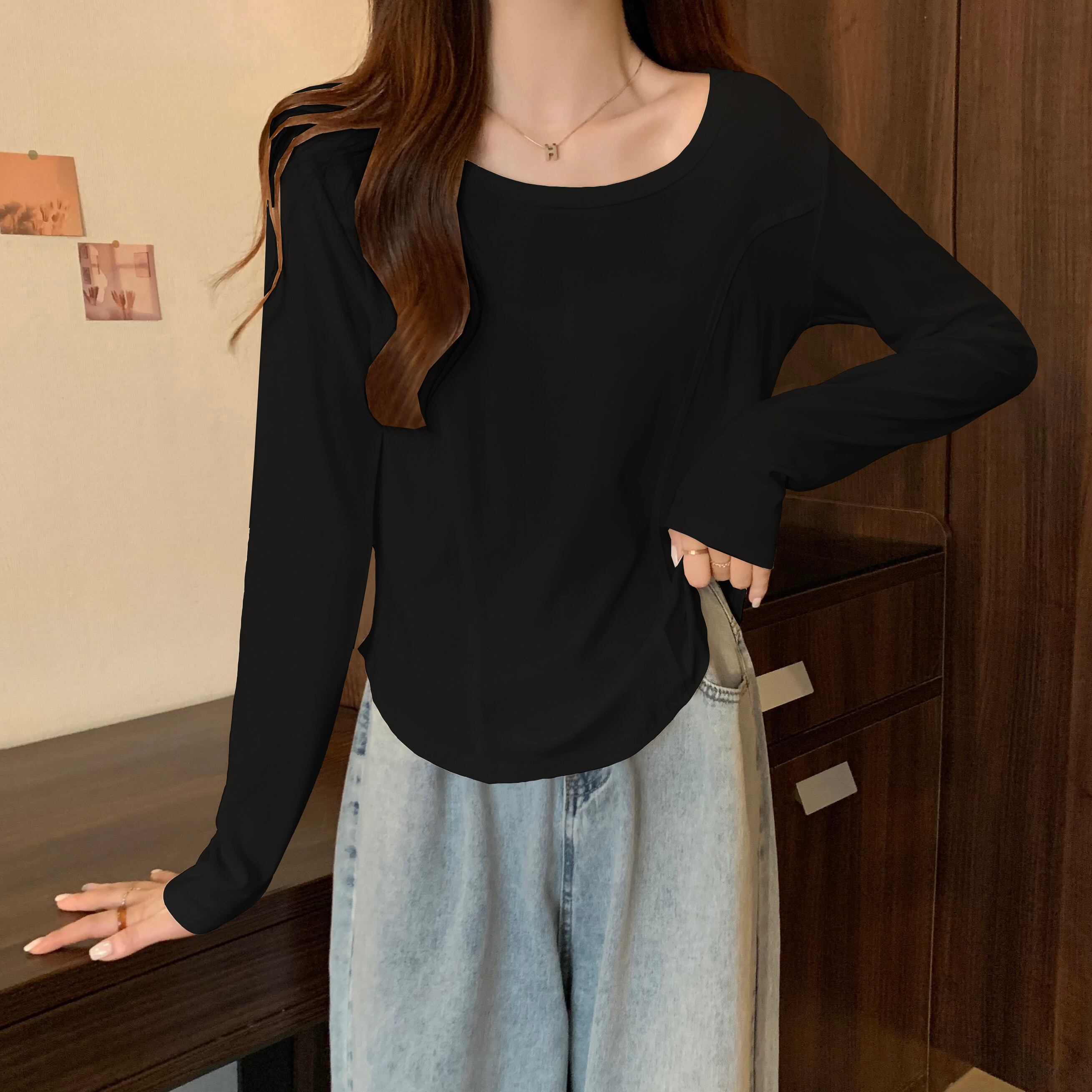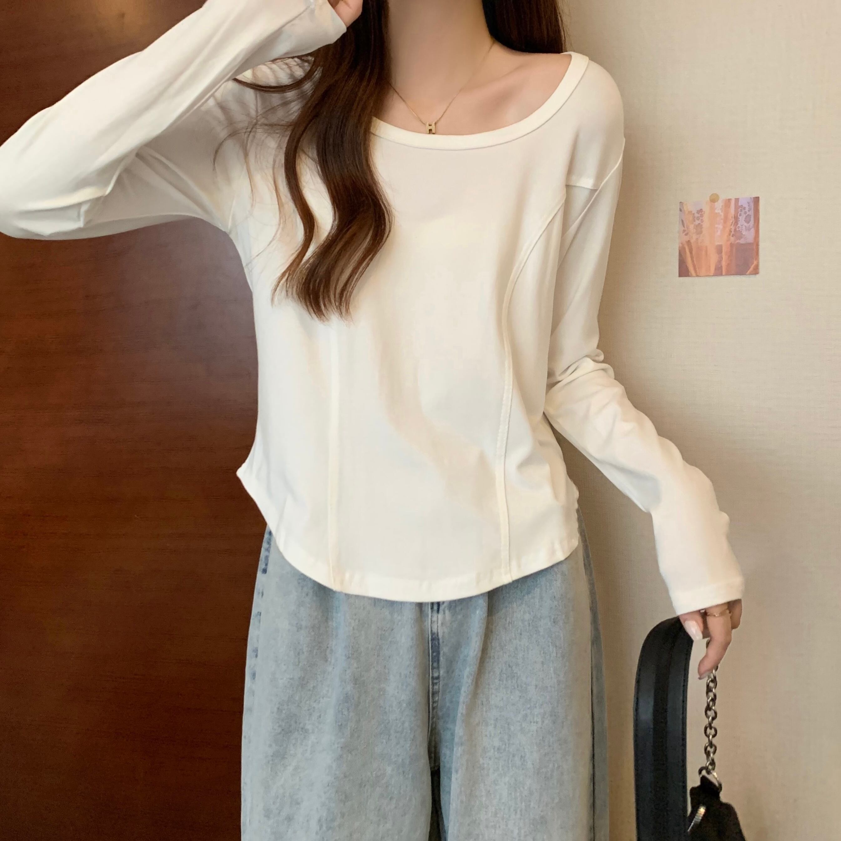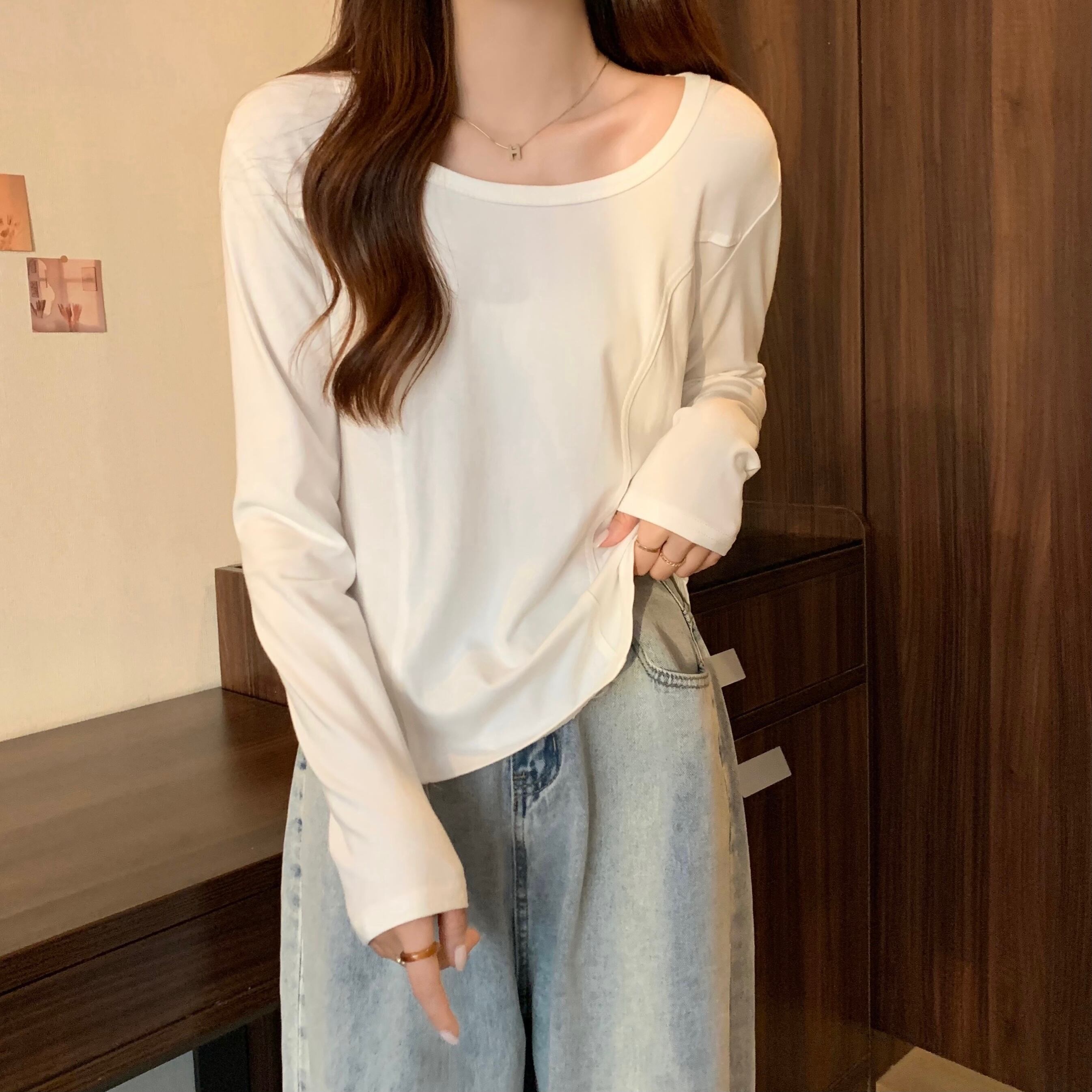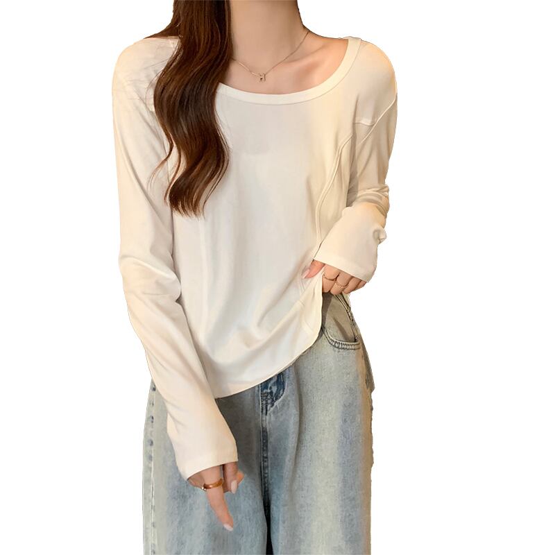 プラスサイズの婦人服2023ファットシスター春の新デザインセンスカジュアルオールマッチフロントショルダー薄手の長袖Tシャツトップ ロング 大きめサイズ スプリング 春物 8884167294322989